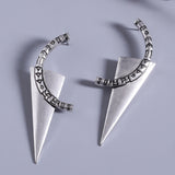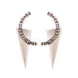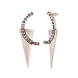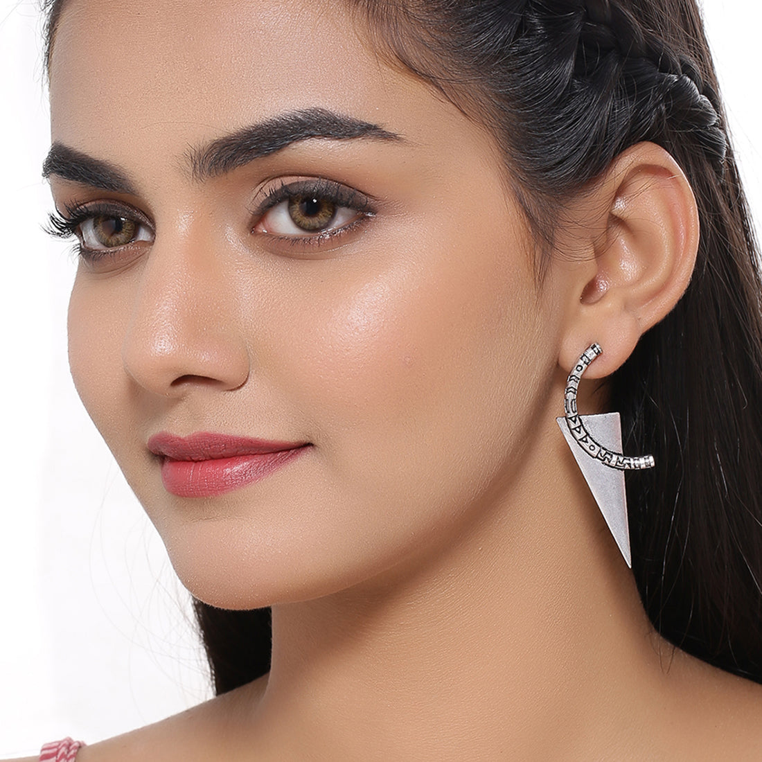 Half circle and triangle earrings made from brass. Oxidised silver plated. Wear with a party dress.
