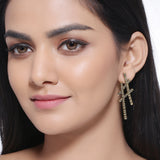 Hashtag earrings embossed with Aztec inspired designs. Made from brass and oxidised gold plated. Wear with casual attire. This piece of jewelry comes with the Voylla assurance of quality and durability.