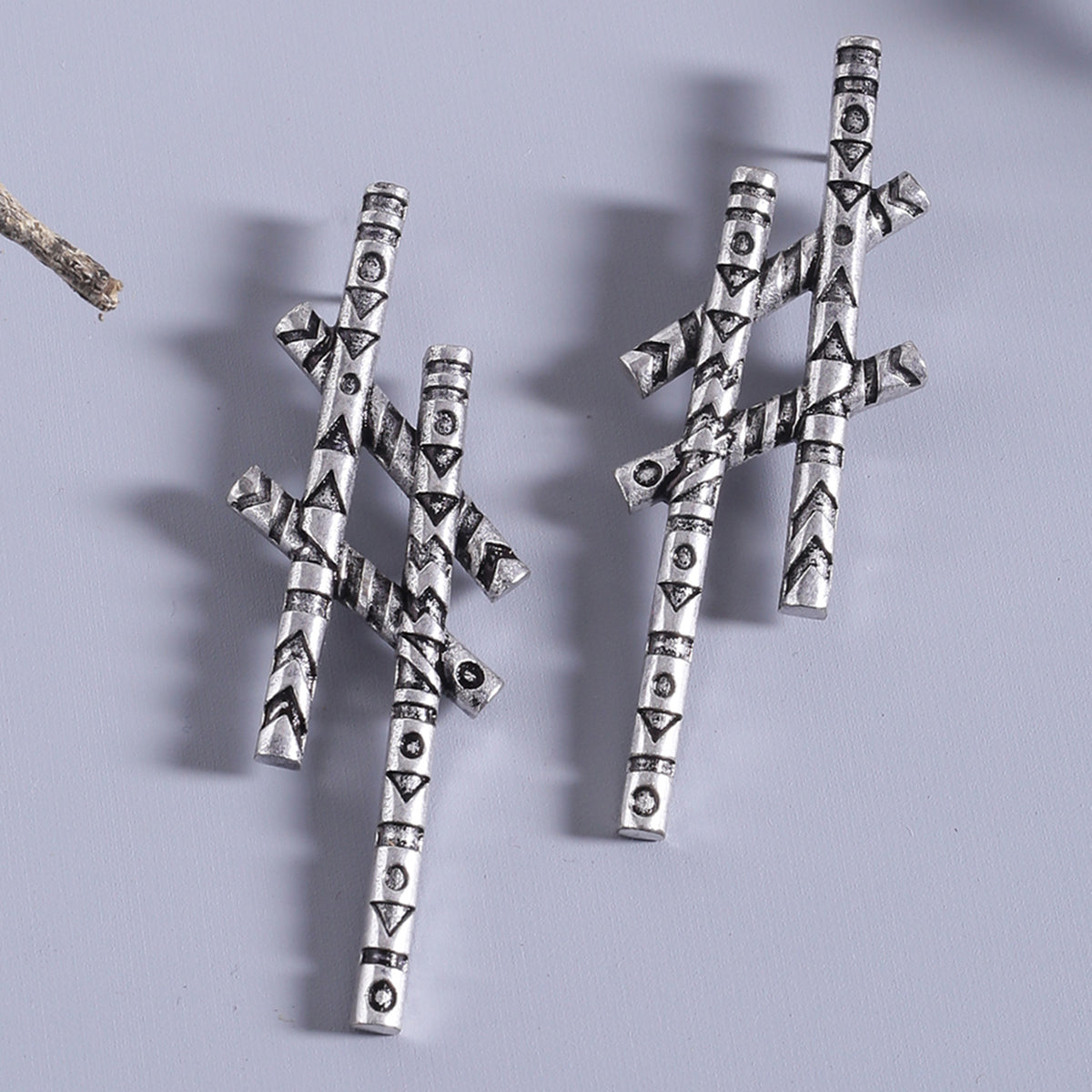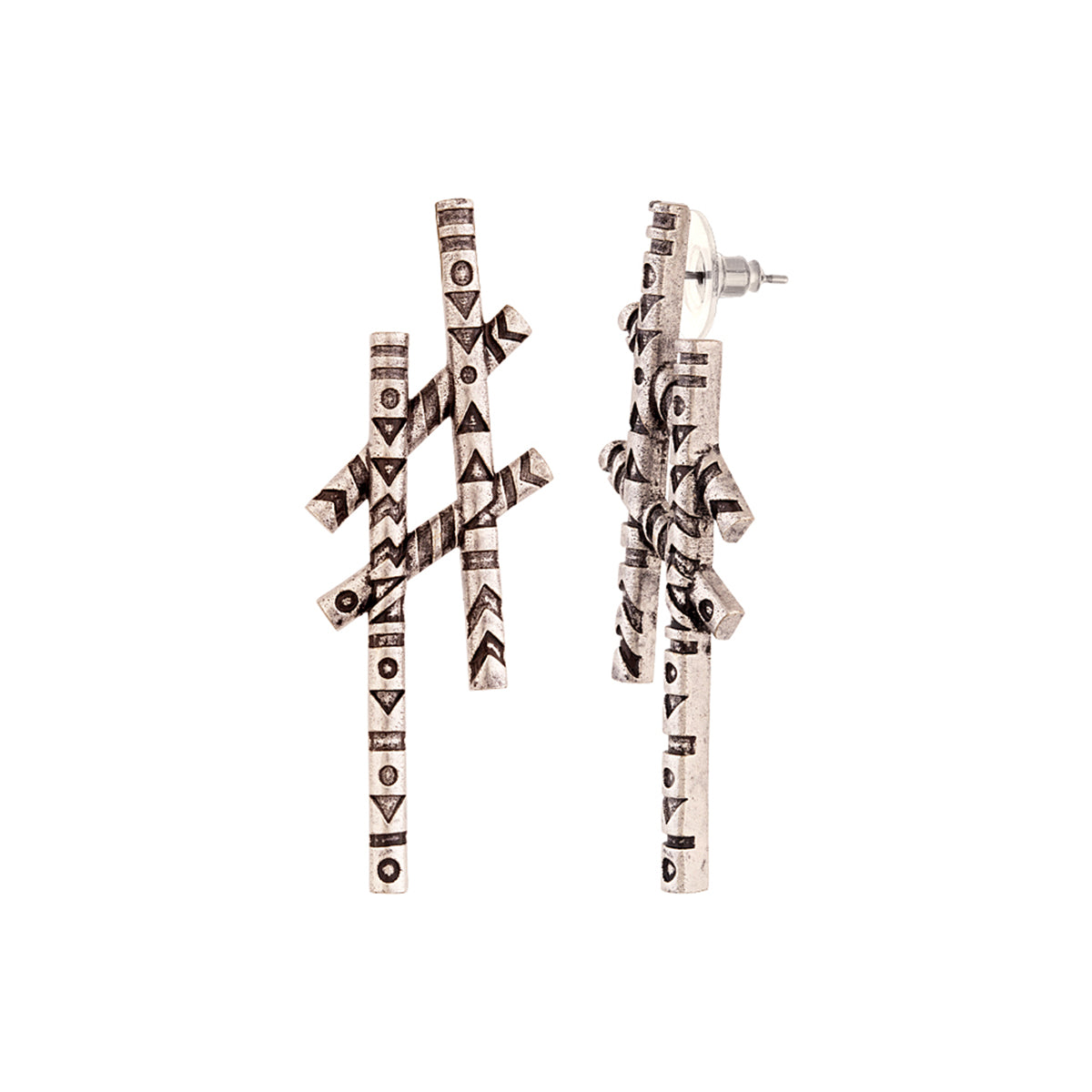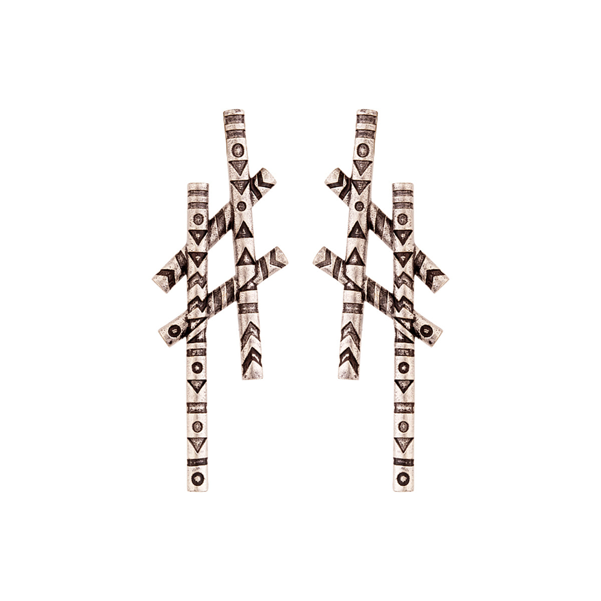 Hashtag earrings made from brass. Oxidised silver plated and a good match for party attire.