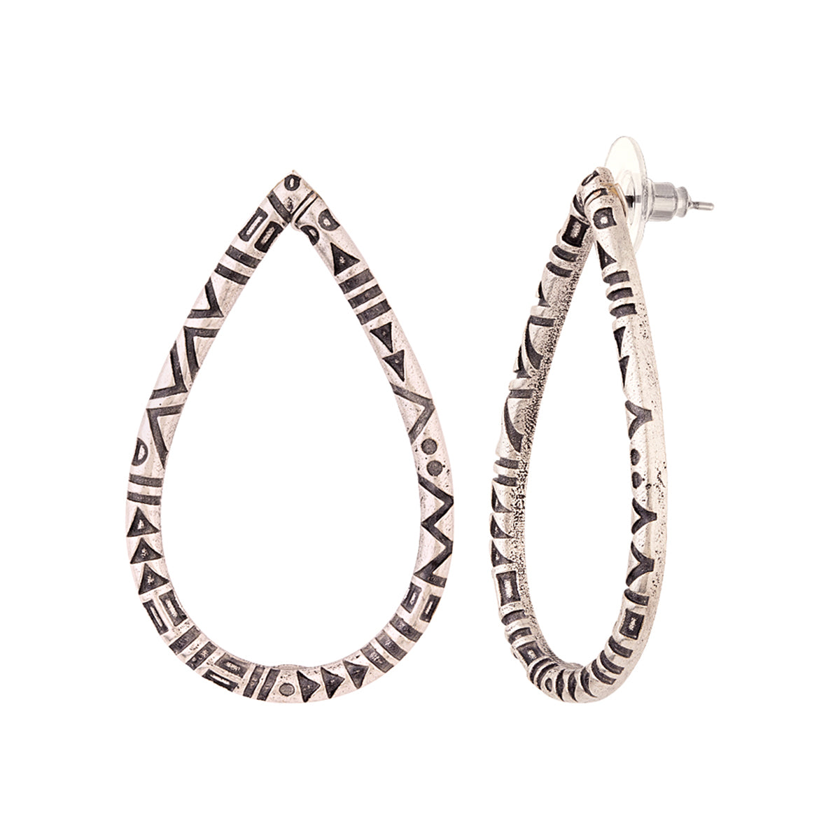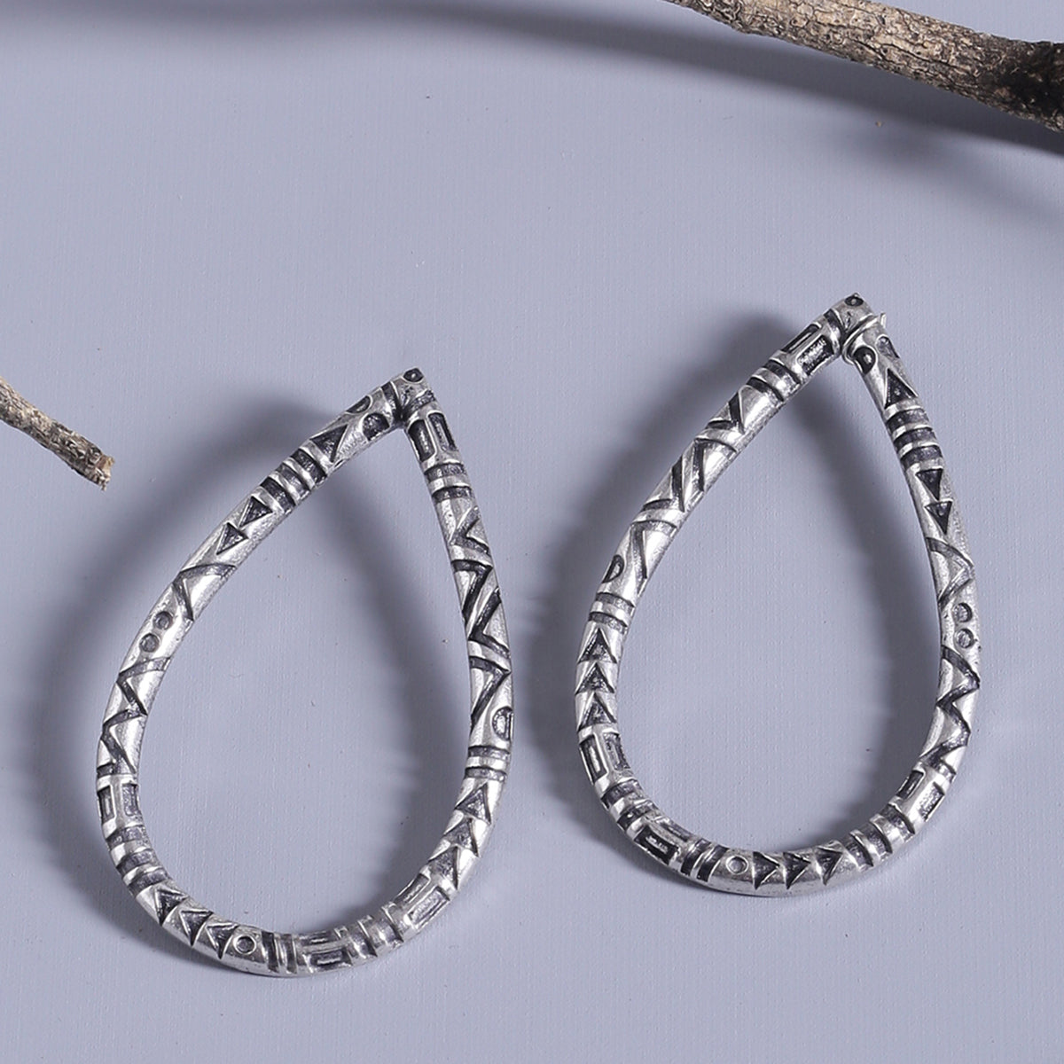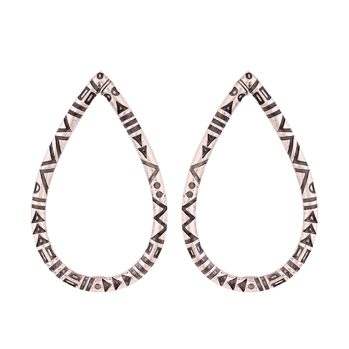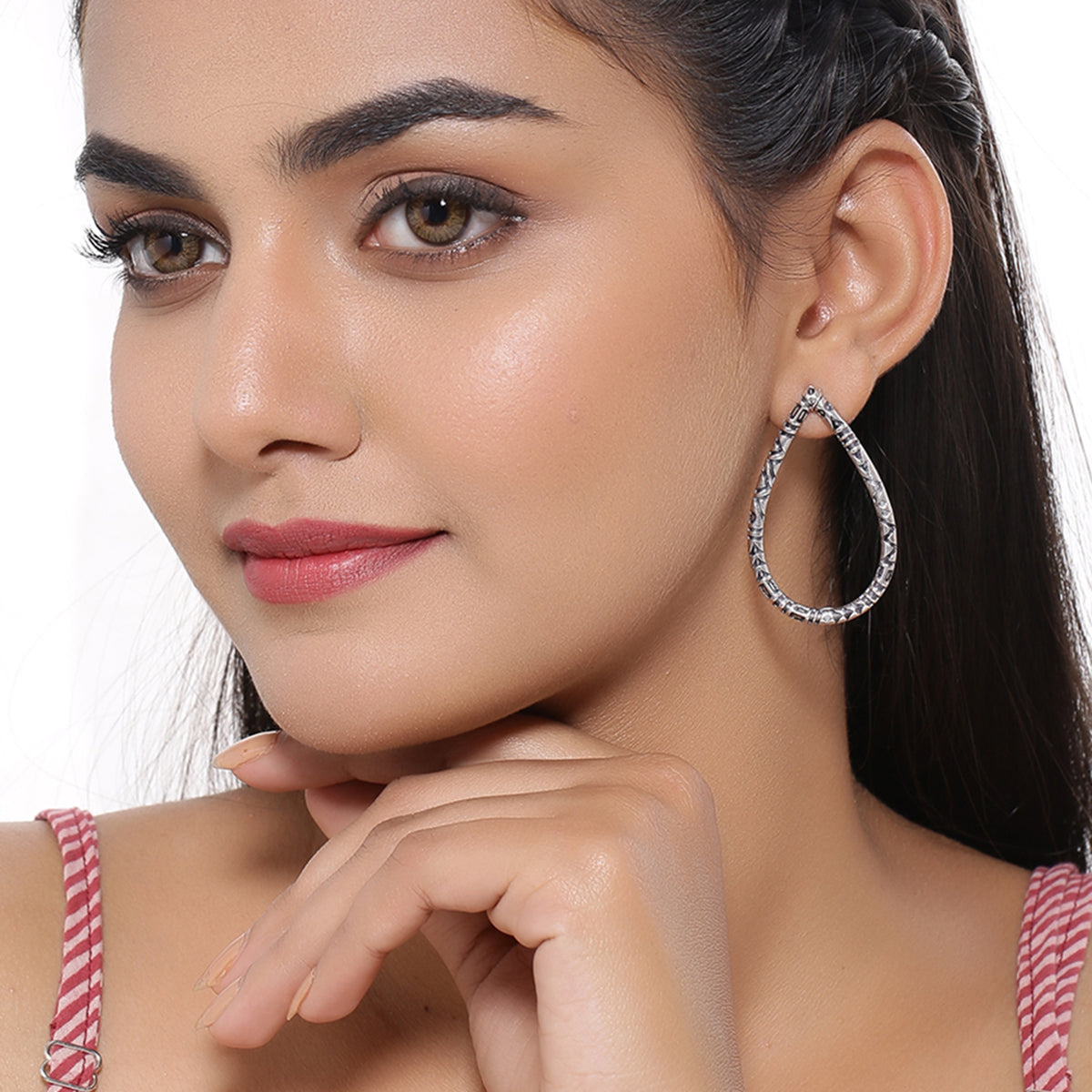 Oval earrings made from brass and oxidised silver plated. Pair with casual looks.