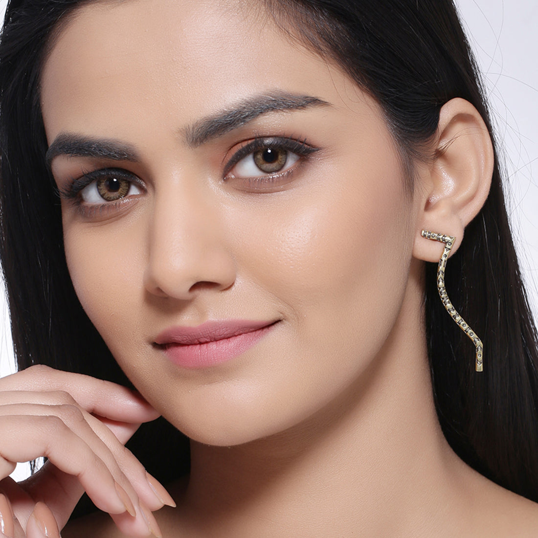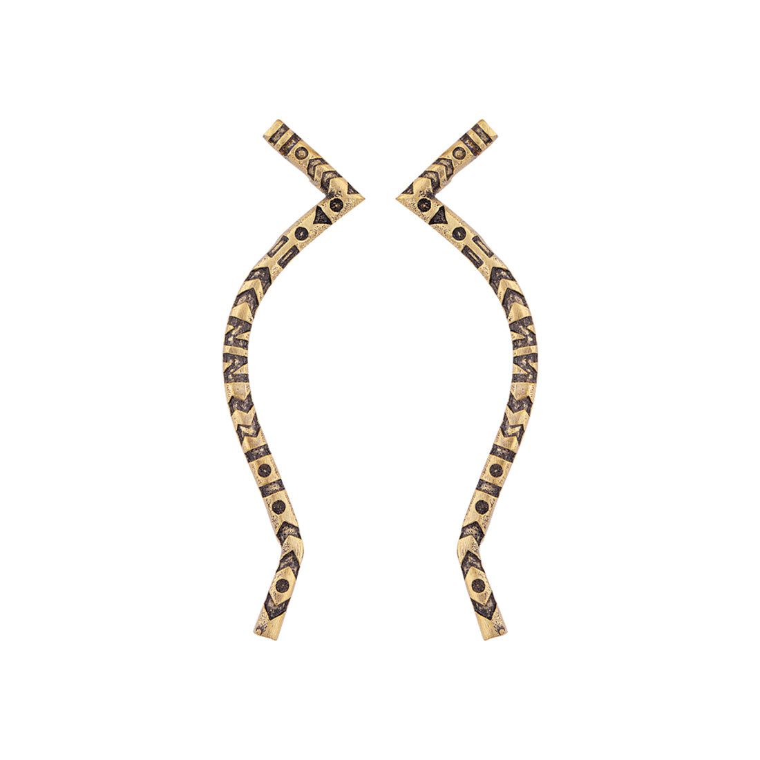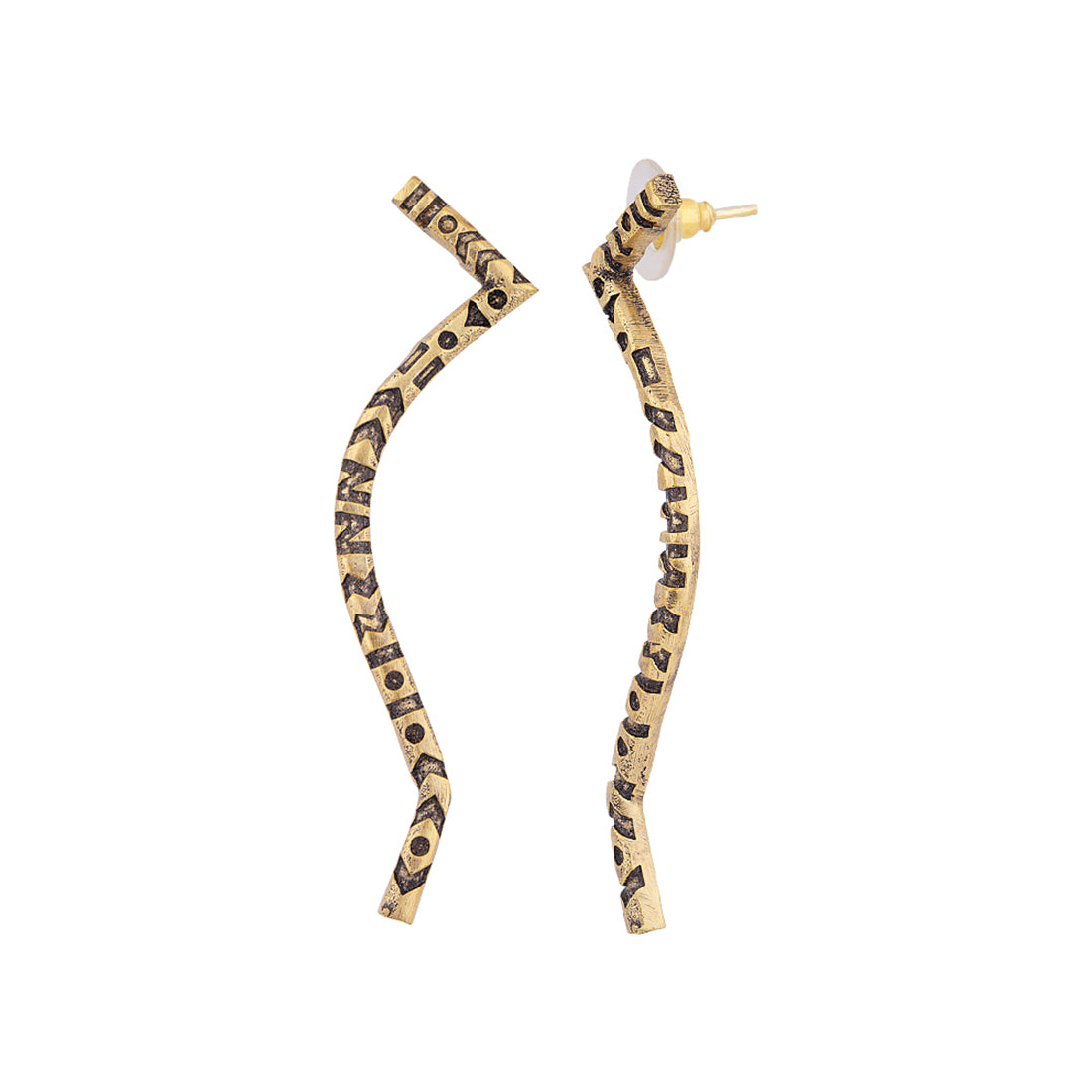 Minimalistic and edgy, the Aztec Bar Curve Danglers are designed to be your fashion favourites. Crafted in premium brass with an oxidised gold surface finish.