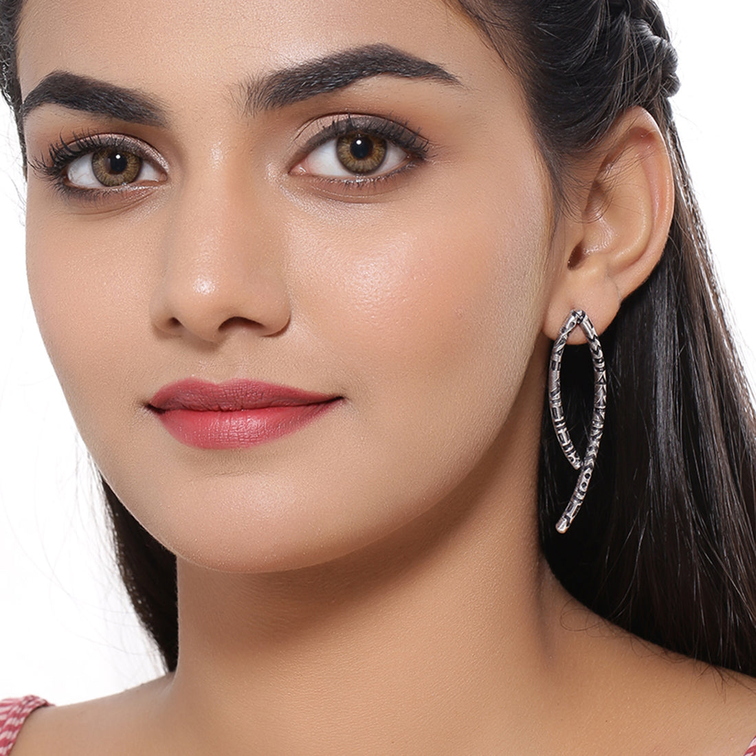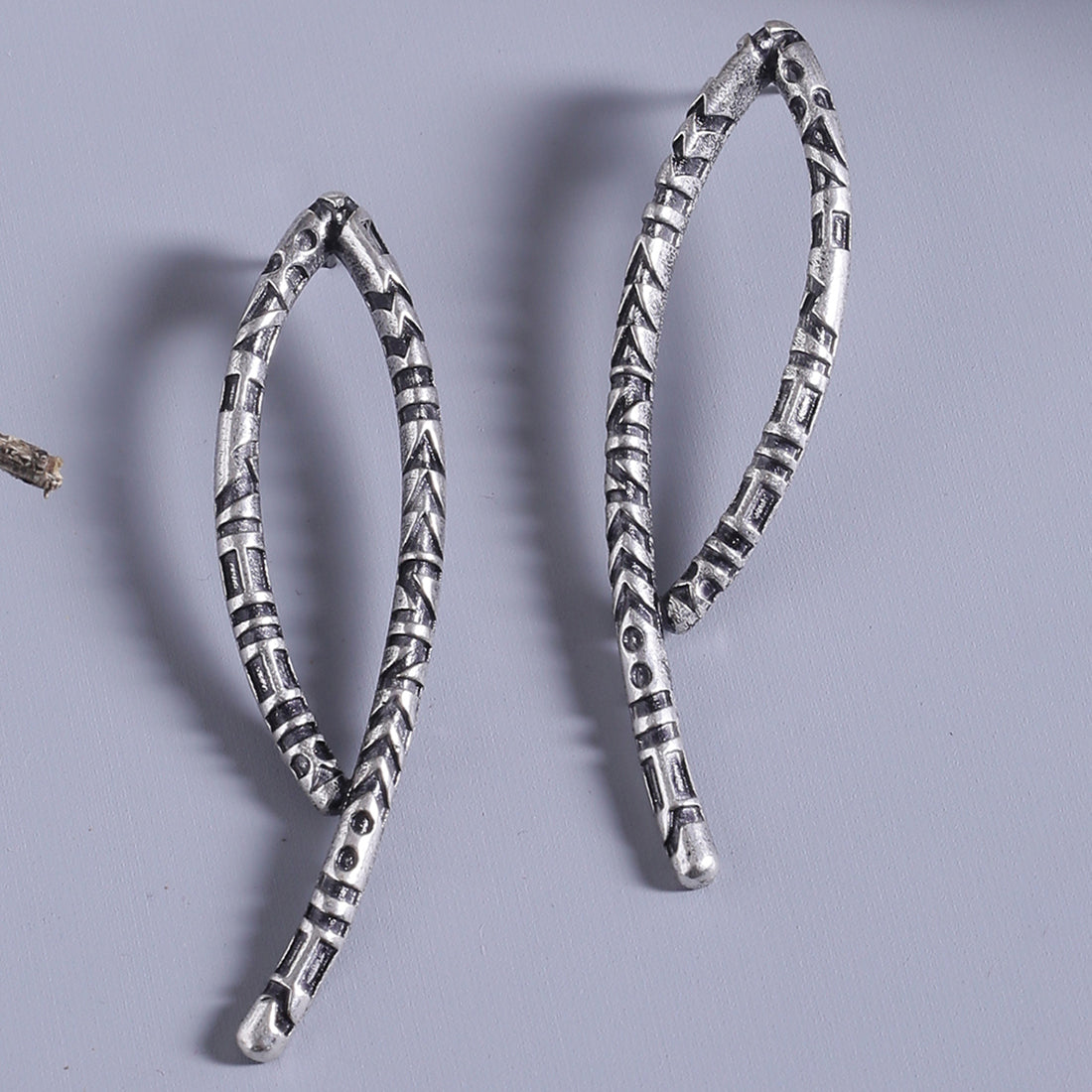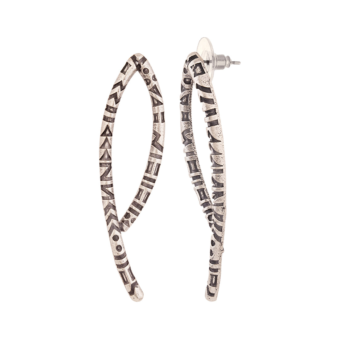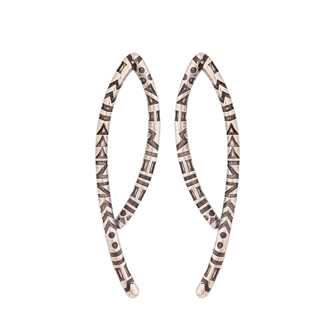 Tribal inspired brass earrings with oxidised silver plating. A good match for casual attire.