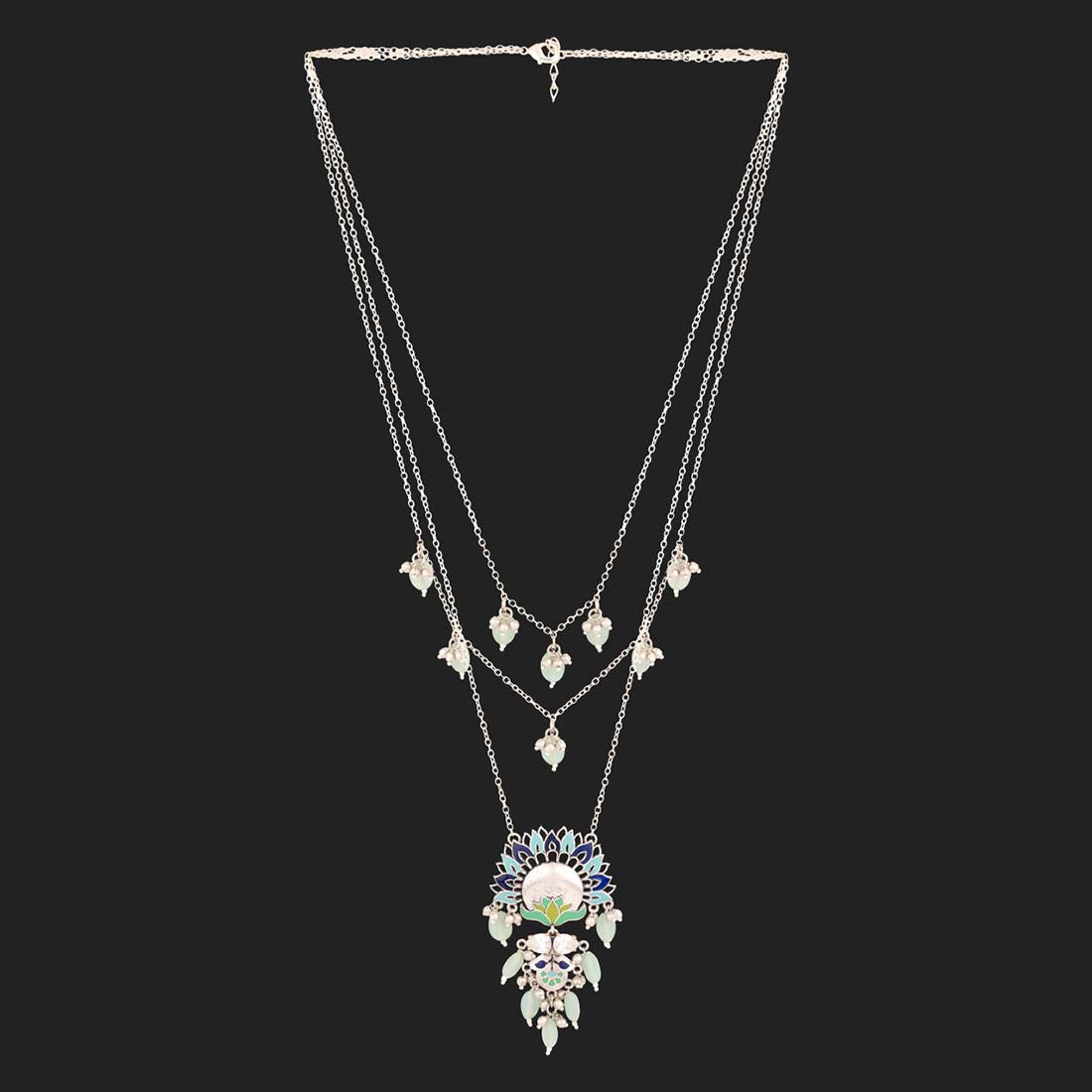 Enamel embellished pendant inspired by block printing patterns. Made from brass and silver plated. Good match for ethnic looks.Caring for your fashion jewelry: We, at Voylla, take care of every piece of jewelry so that you don't spend hours caring...