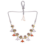 Gulubandh style brass necklace inspired by Jaipuri block printing patterns. Wear the silver plated necklace with ethnic looks.