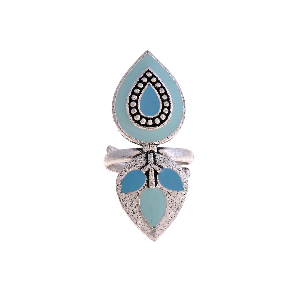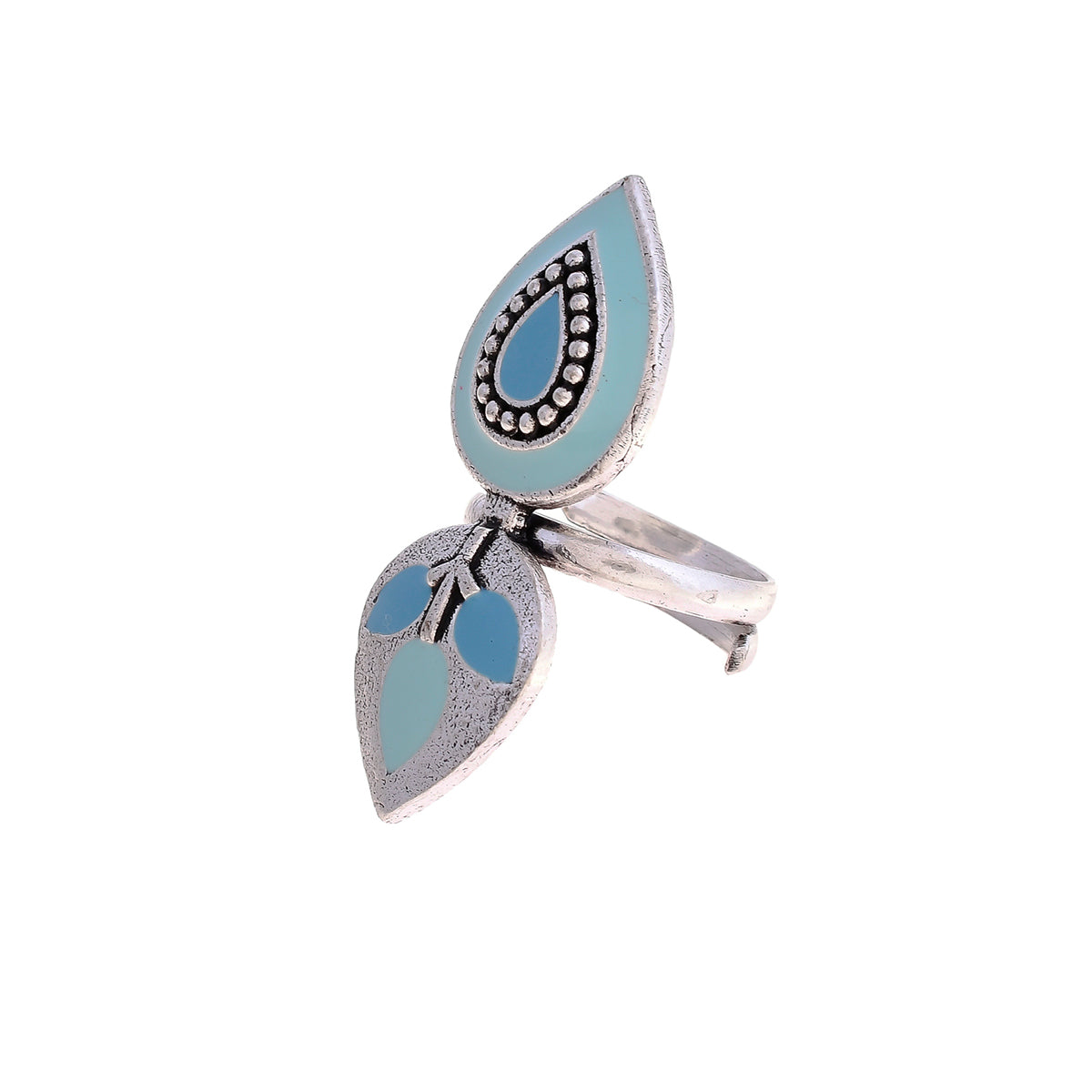Leaves motifs finger ring inspired by block printing patterns. Made from brass and silver plating. Wear with casual attire. This piece of jewelry comes with the Voylla assurance of quality and durability. Caring for your fashion jewelry: We, at Voylla, take care of every piece of jewelry so that you don't spend hours caring for them.