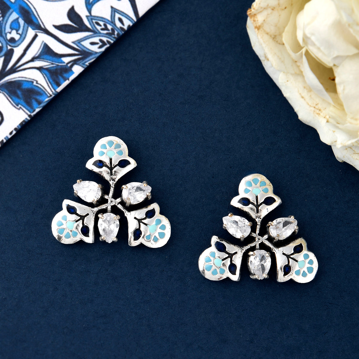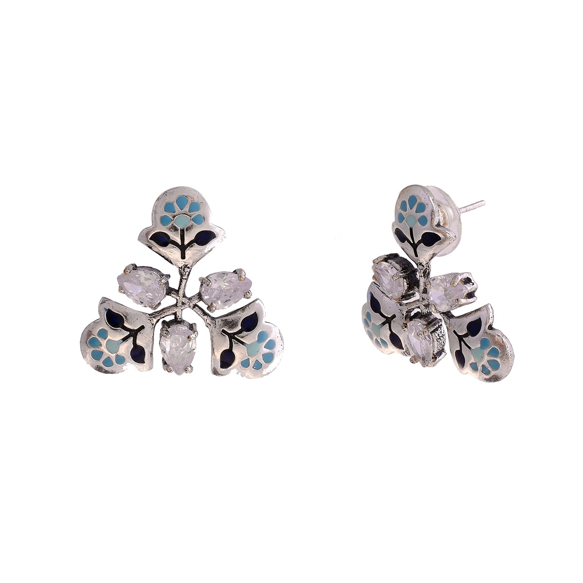 Inspired by the craft of Block printing from Sanganer, these floral earrings have been crafted from nickel free brass. Silver oxidized. Team up with a breezy dress.
