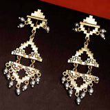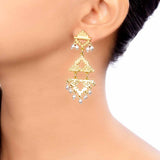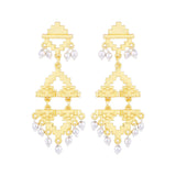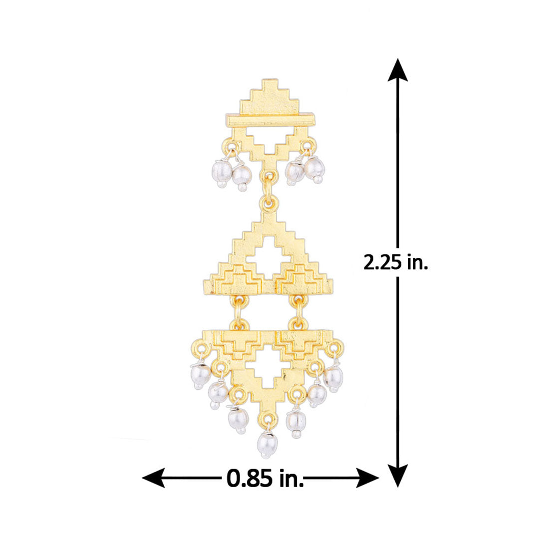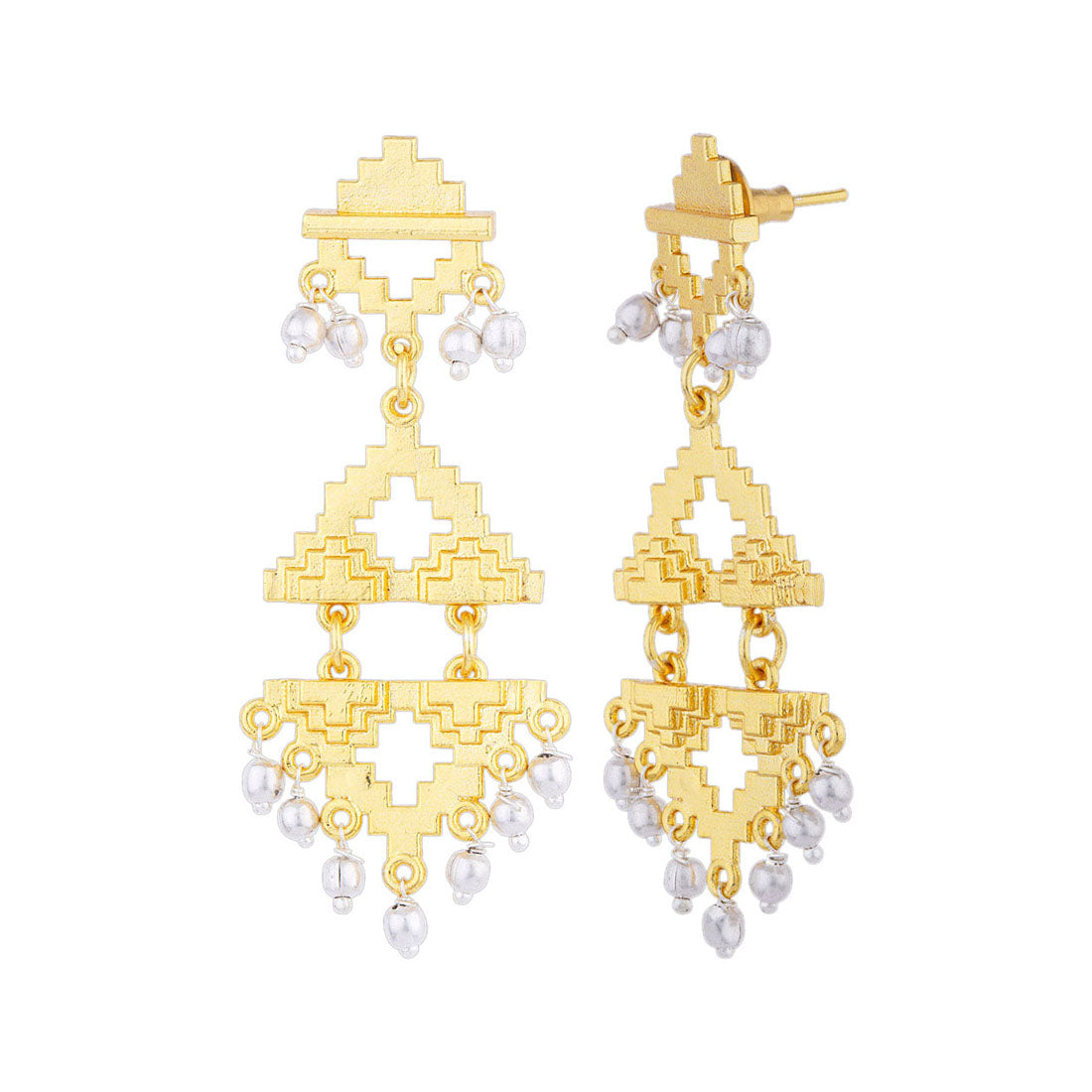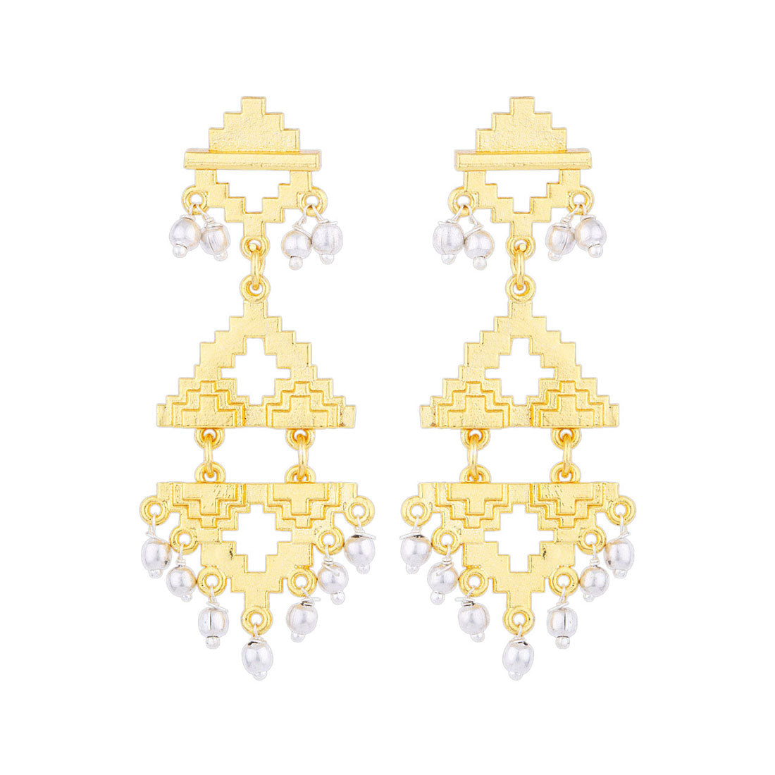 Featuring a cutwork design, these drop earrings have been inspired by Stepwells of Rajasthan. Yellow gold plated and crafted from brass. Pair with an saree or kurta, or even an ethnic skirt.