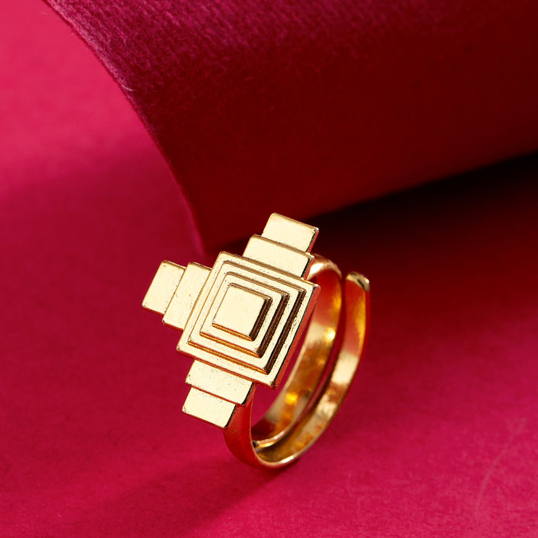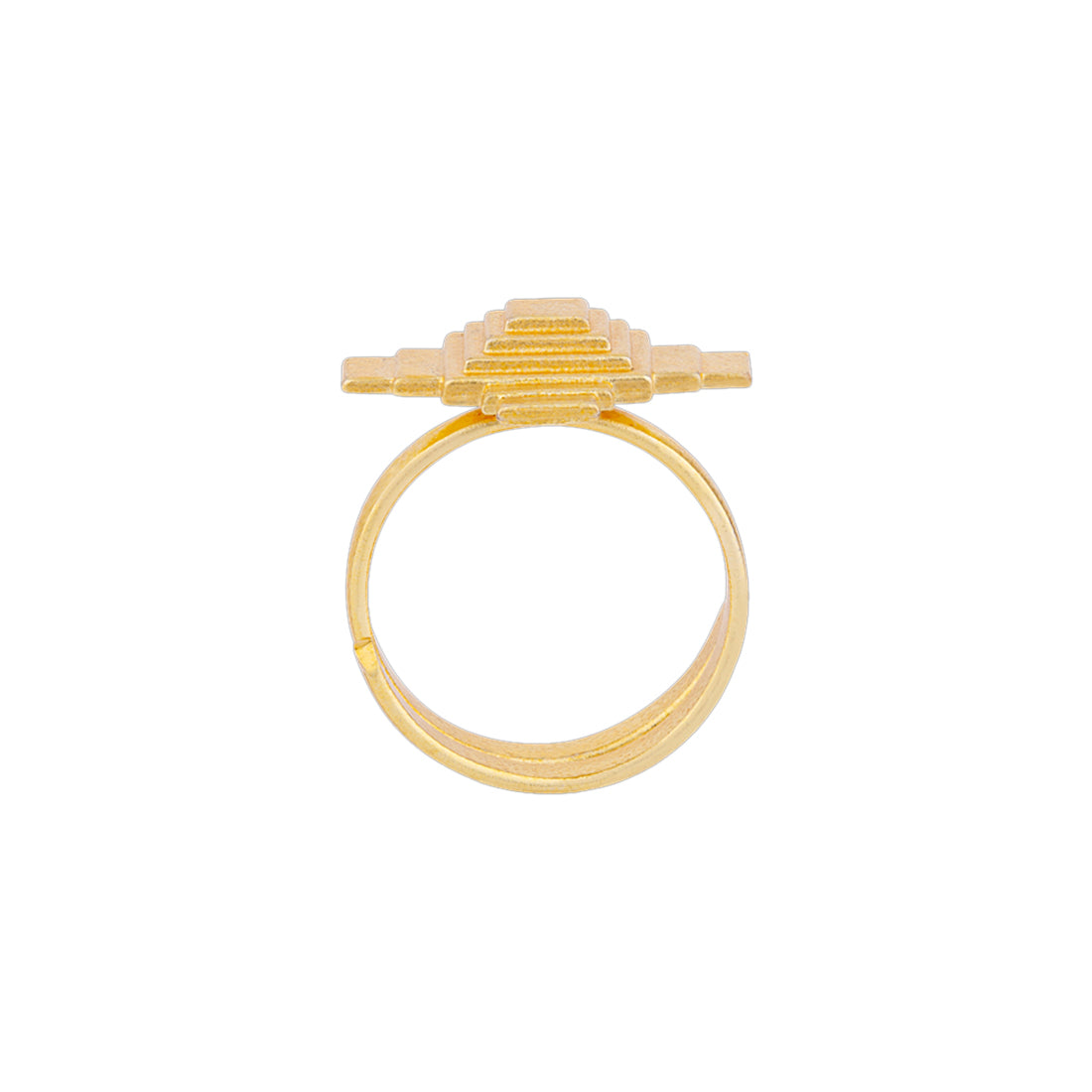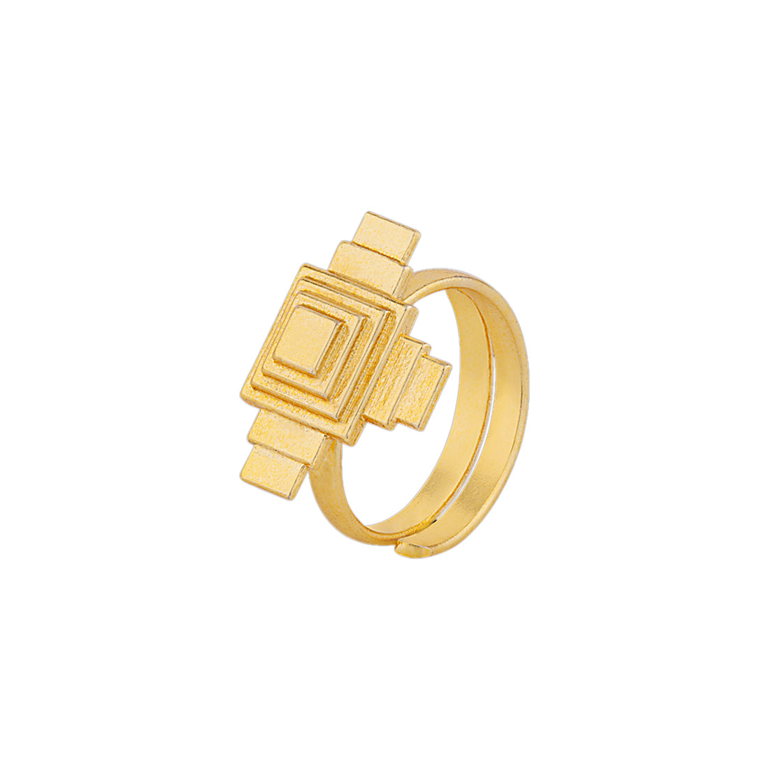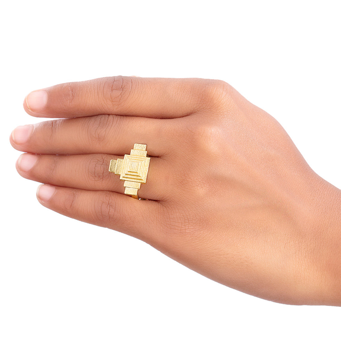 Fashioned after Rajasthan's iconic Stepwells, the yellow gold plated ring has been crafted from brass. Adjustable and lightweight. Wear with any of your favourite outfits.