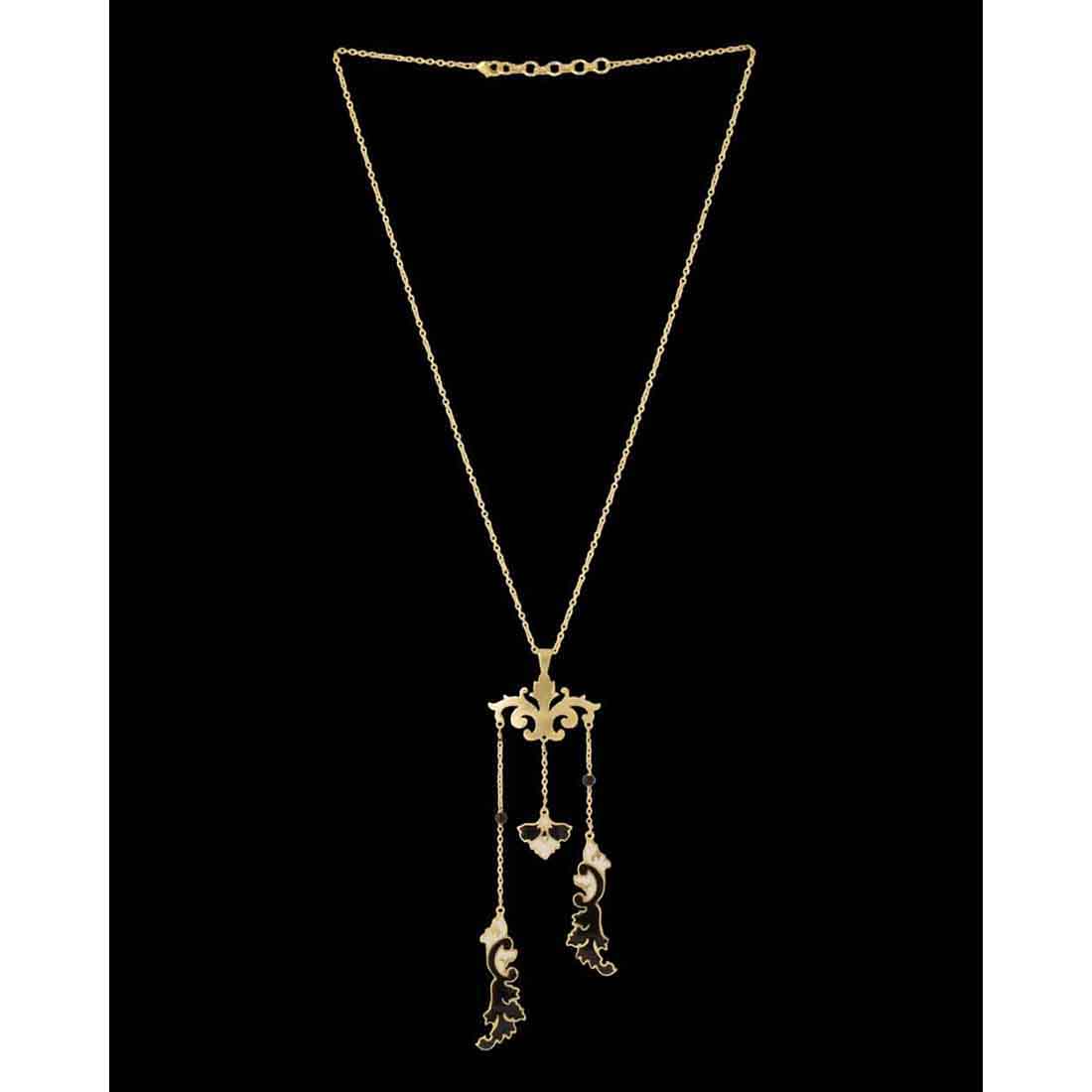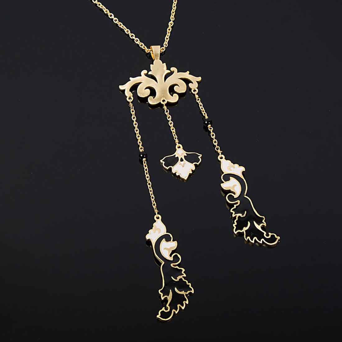 This absolutely stunning Baroque Queen pendant with a heavy, drop pendant is a classic, timeless piece that every fashionable diva must add to her jewelry collection. Inspired from vintage style, aristocratic jewelry pieces, this mesmerising beauty has been fashioned out of 3% silver and brass with uttermost care. The elegant, eye-catching necklace has been embellished with artistic details and black and gold enamel. Yellow gold plated for maximum brilliance, this matt finish necklace will look splendid with all your favourite formal and semiformal outfits.