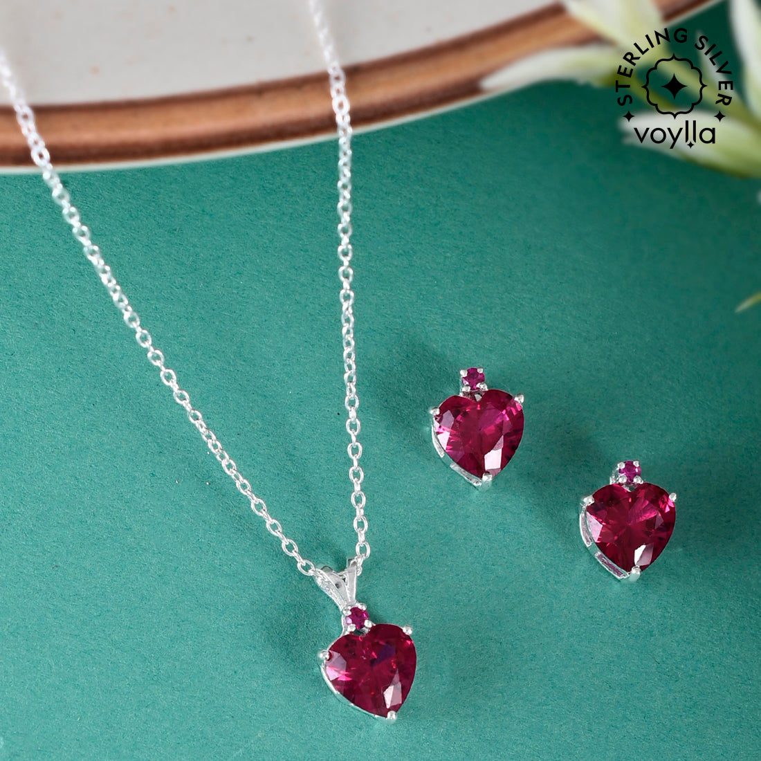 Beautiful 925 Sterling Silver Heart-Shape Pendant Set