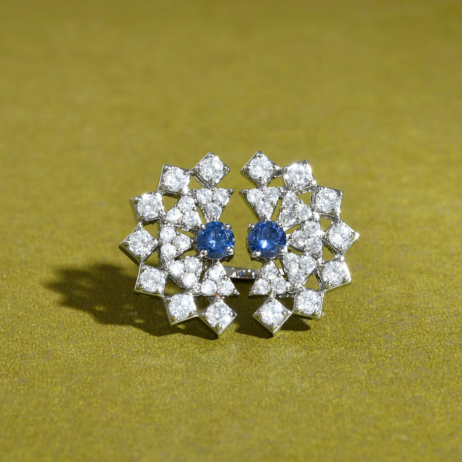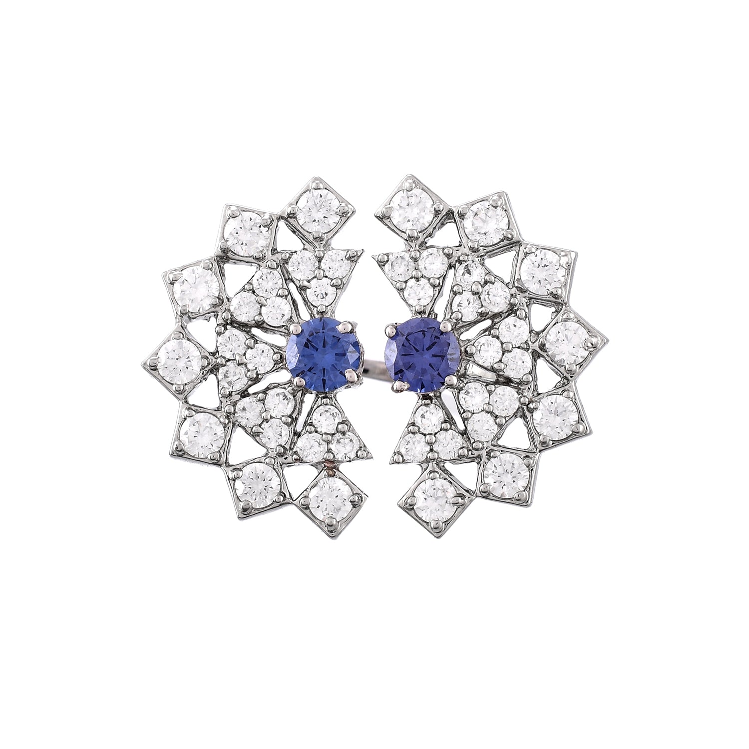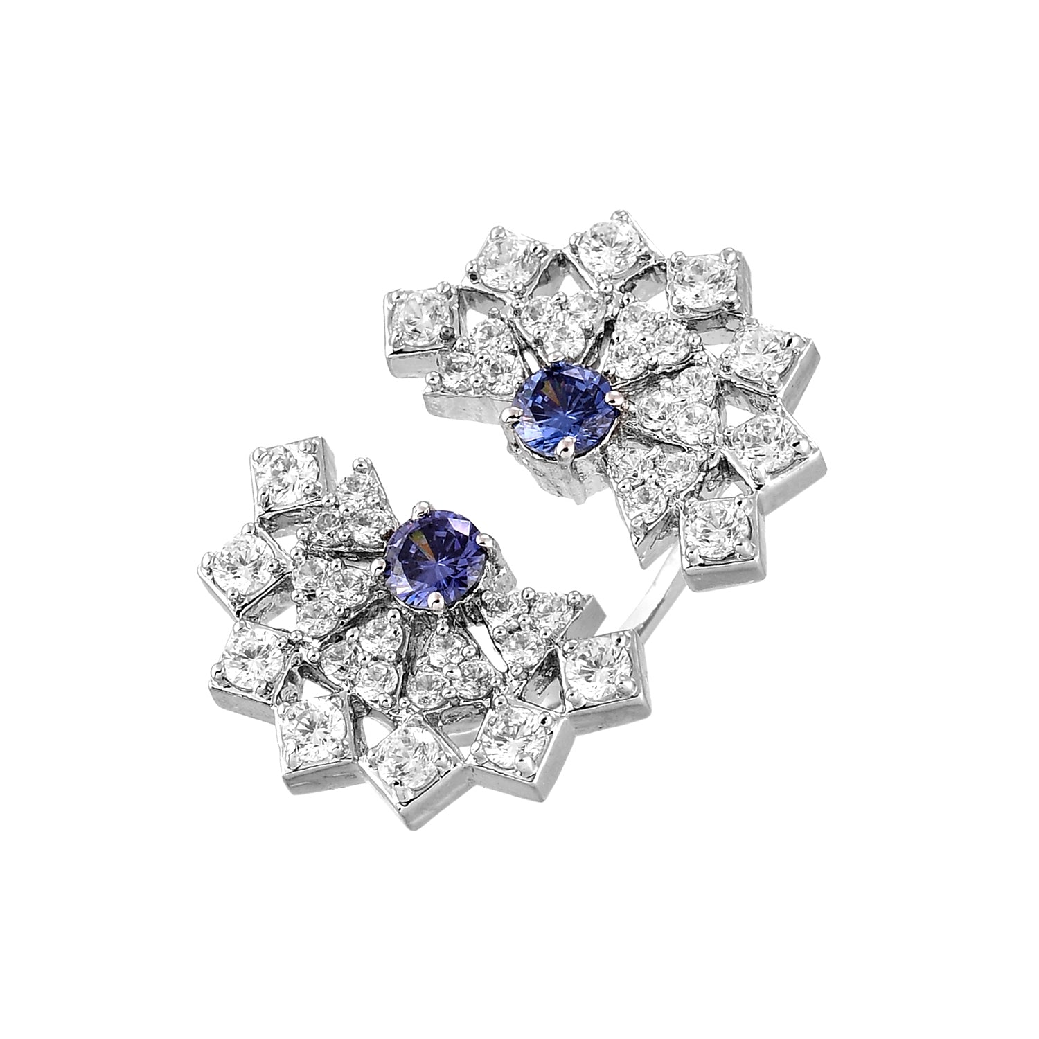 The morning dew and beauty of dawn have inspired this open design finger ring, which has been fashioned out of brass. Embellished with cubic zirconia gemstones and silver plated, the comfortable ring is versatile and lightweight.