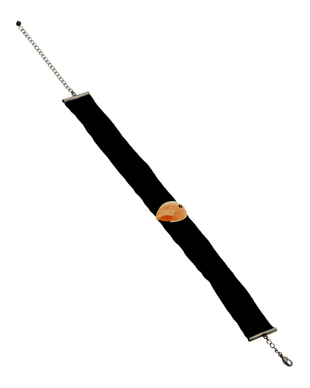 Show off a flash of brightness and beauty to your neckline with this attractive choker necklace. This velvet necklace features embellishment of beige color stone. It is a must have ornament for you.