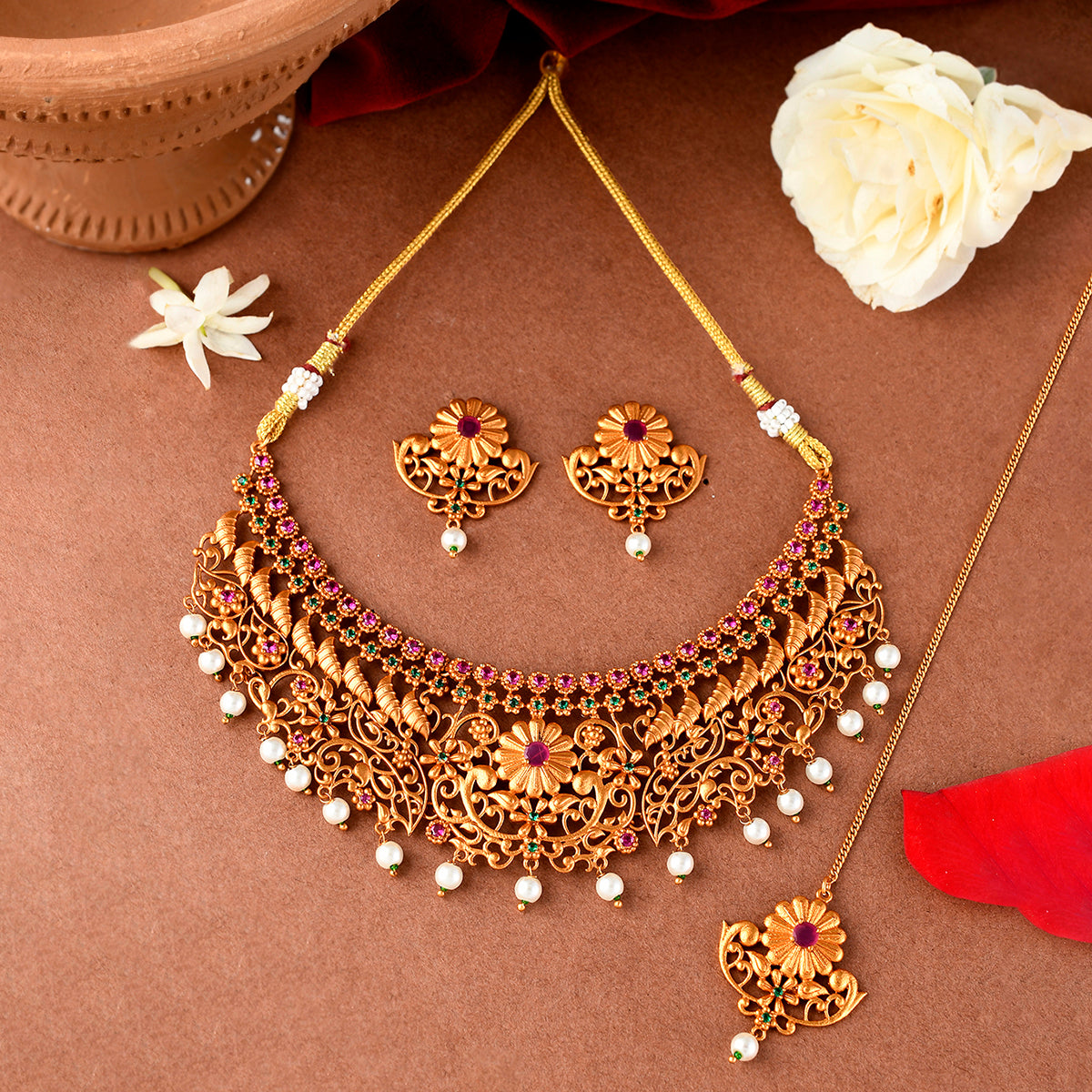 • Sales Package: 1 Necklace,2 Earrings,1 Maang Tika