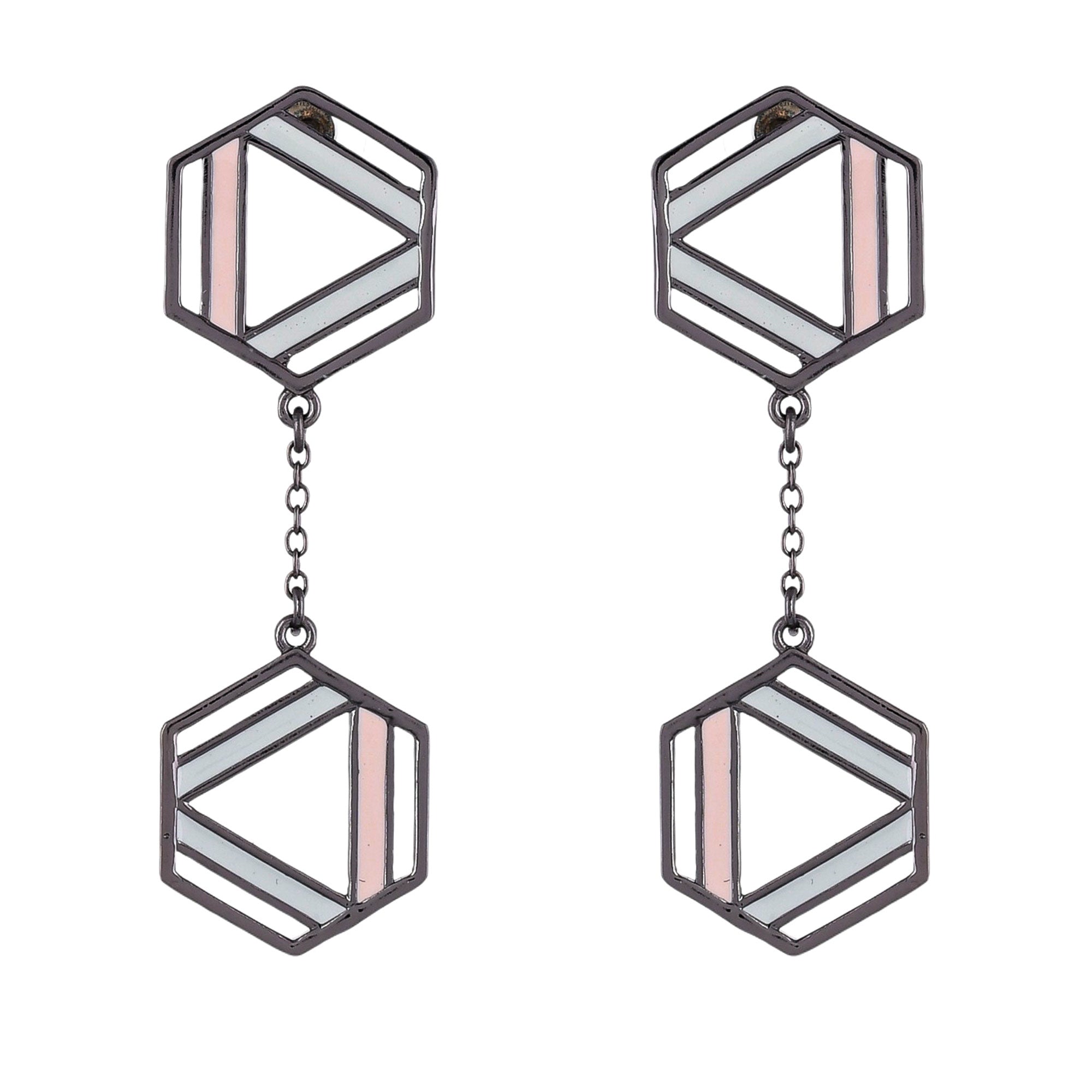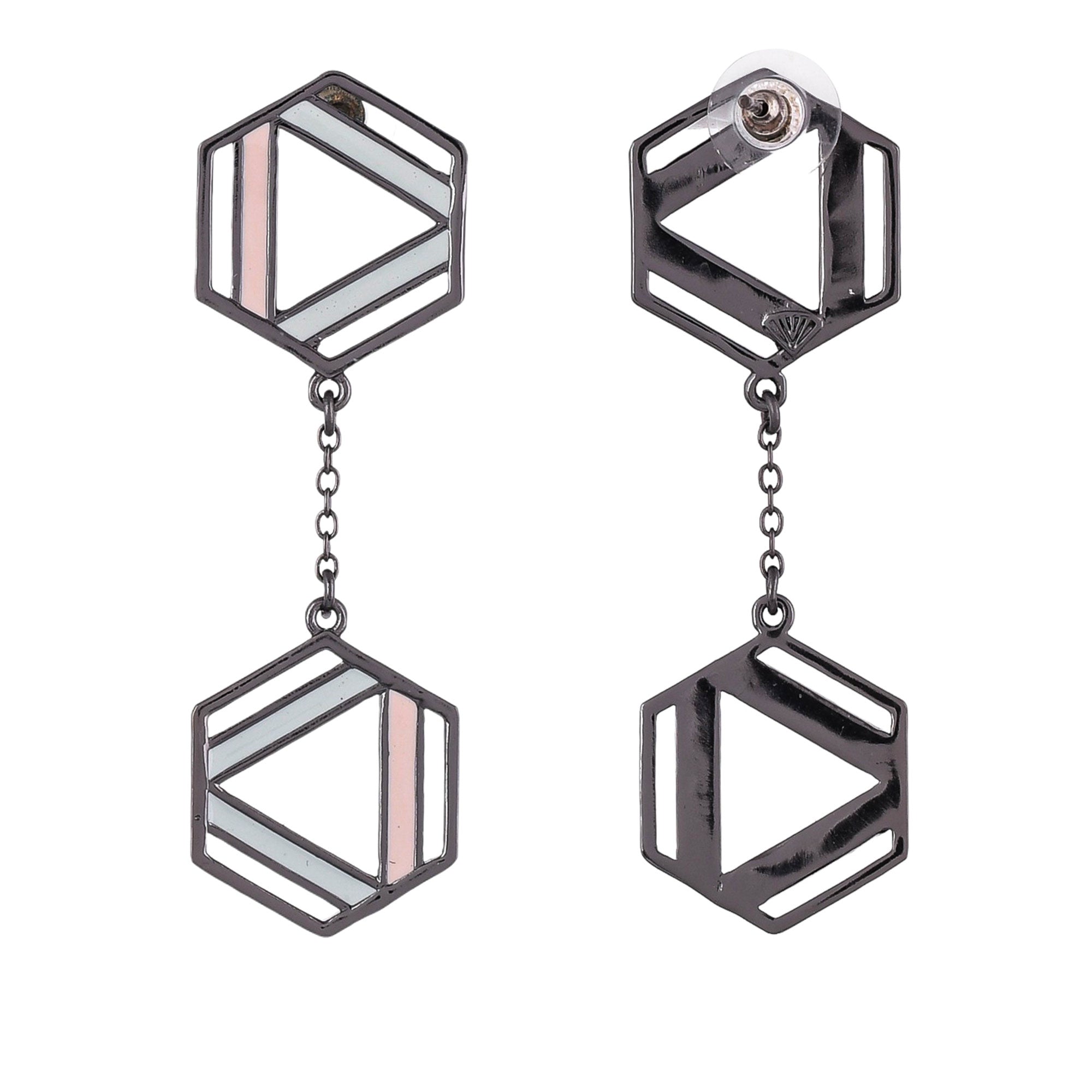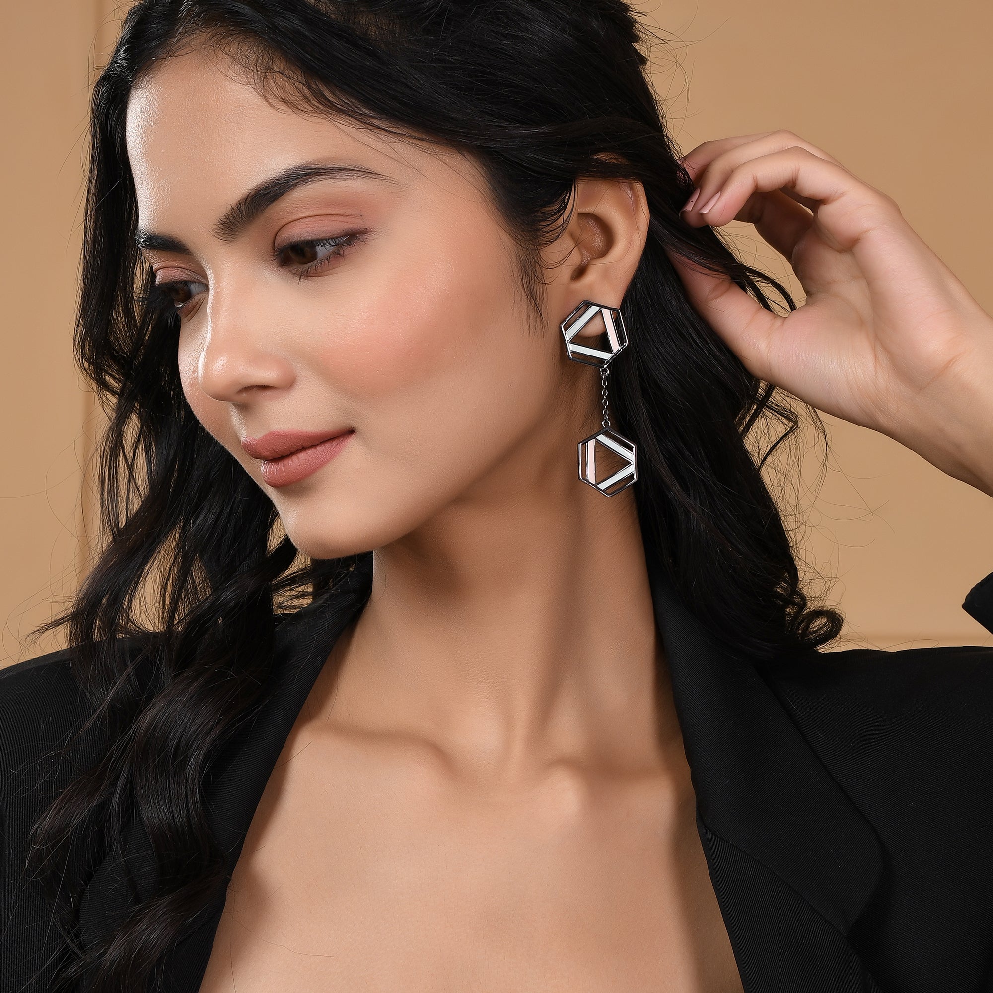 Impress your beloved on the next date with by adorning these fashionable and chic earrings. Made out of brass and plated in black rhodium.