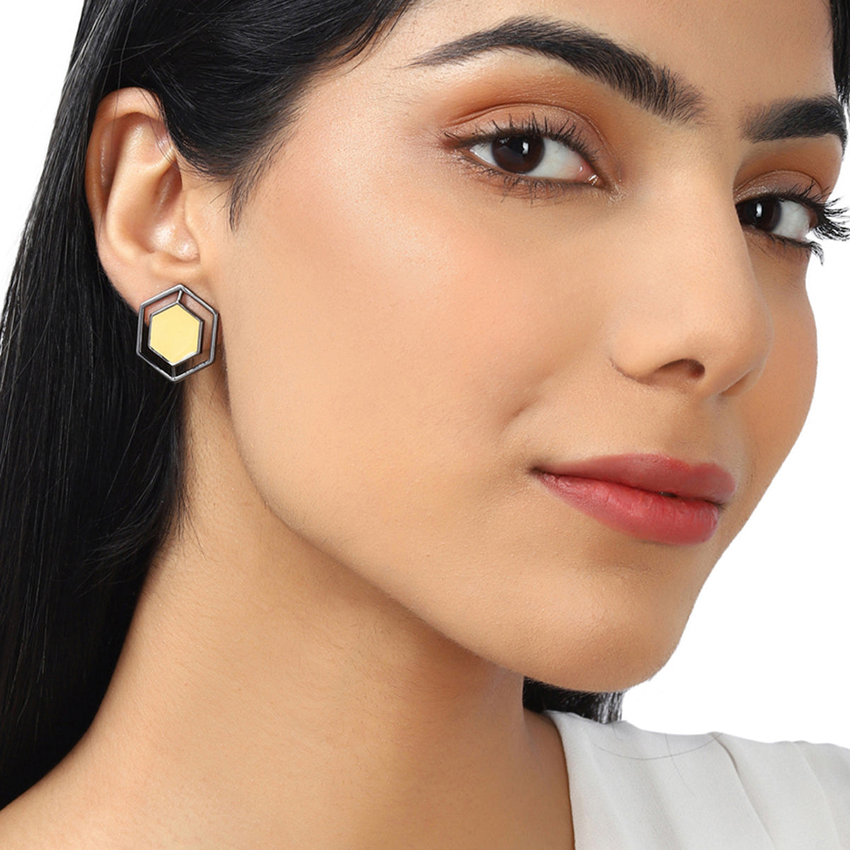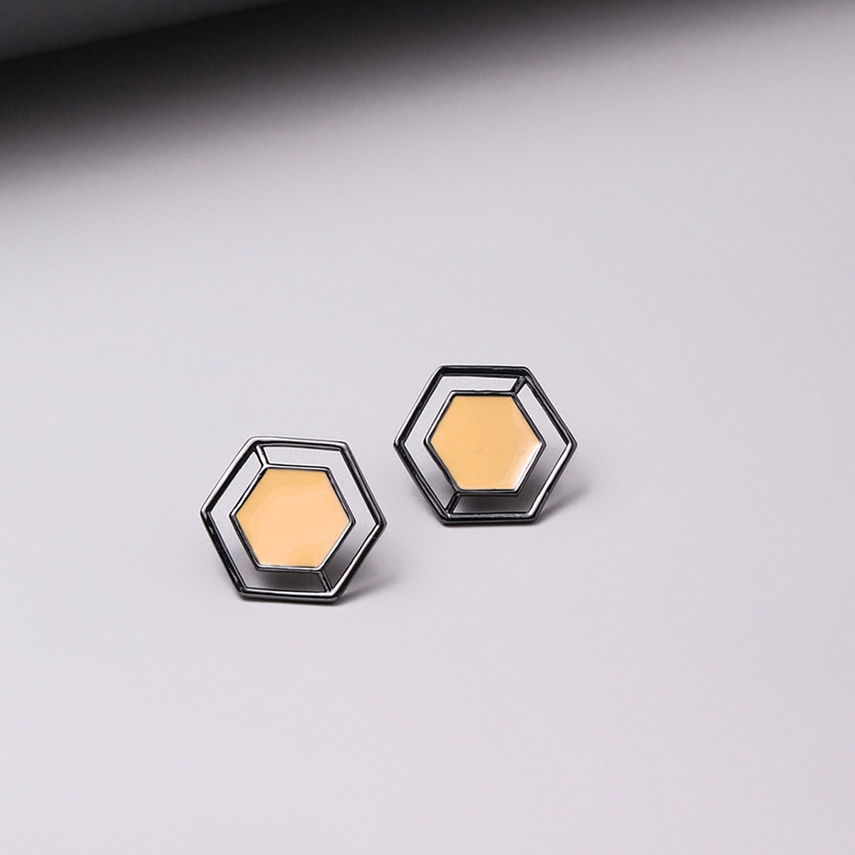 Elegant formal earrings are a must-have in every girl's collection, this piece in a hexagon shape with pastel inner detail is the best option to gift to someone you want to be the next CEO. They are appropriate in size and fit the best for the formal ornaments category.