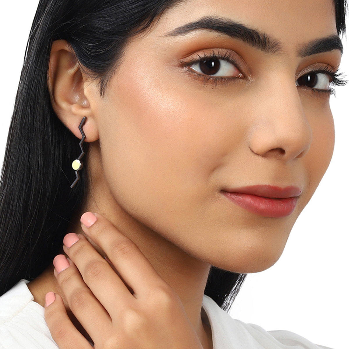 This spiral black with a pastel yellow ring structure earrings is to date, the coolest earring you will ever have and will distinguish you from everyone else. Just a look at it will make people wonder over the fact of how unique is this piece looks.