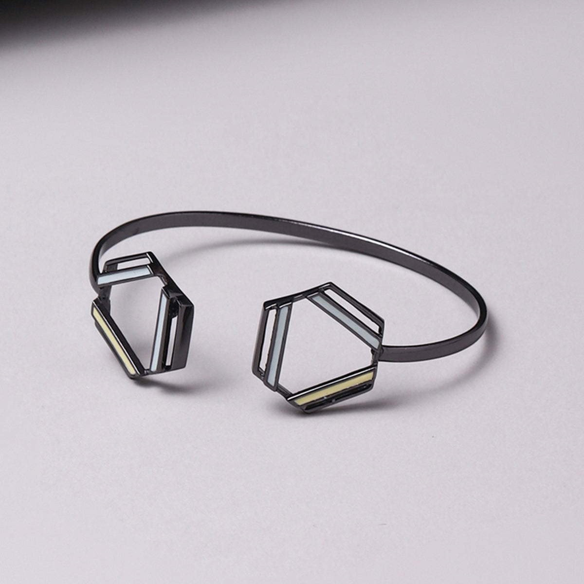 A vintage bracelet is just a click away. It will make you look expensive in a second the black hoop is so shiny and well-polished along, with the hexagon ends to make it more whimsical. This beauty at such a pocket-friendly price is a dream come true.