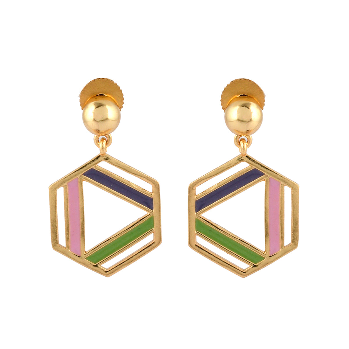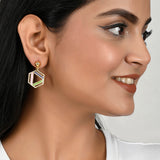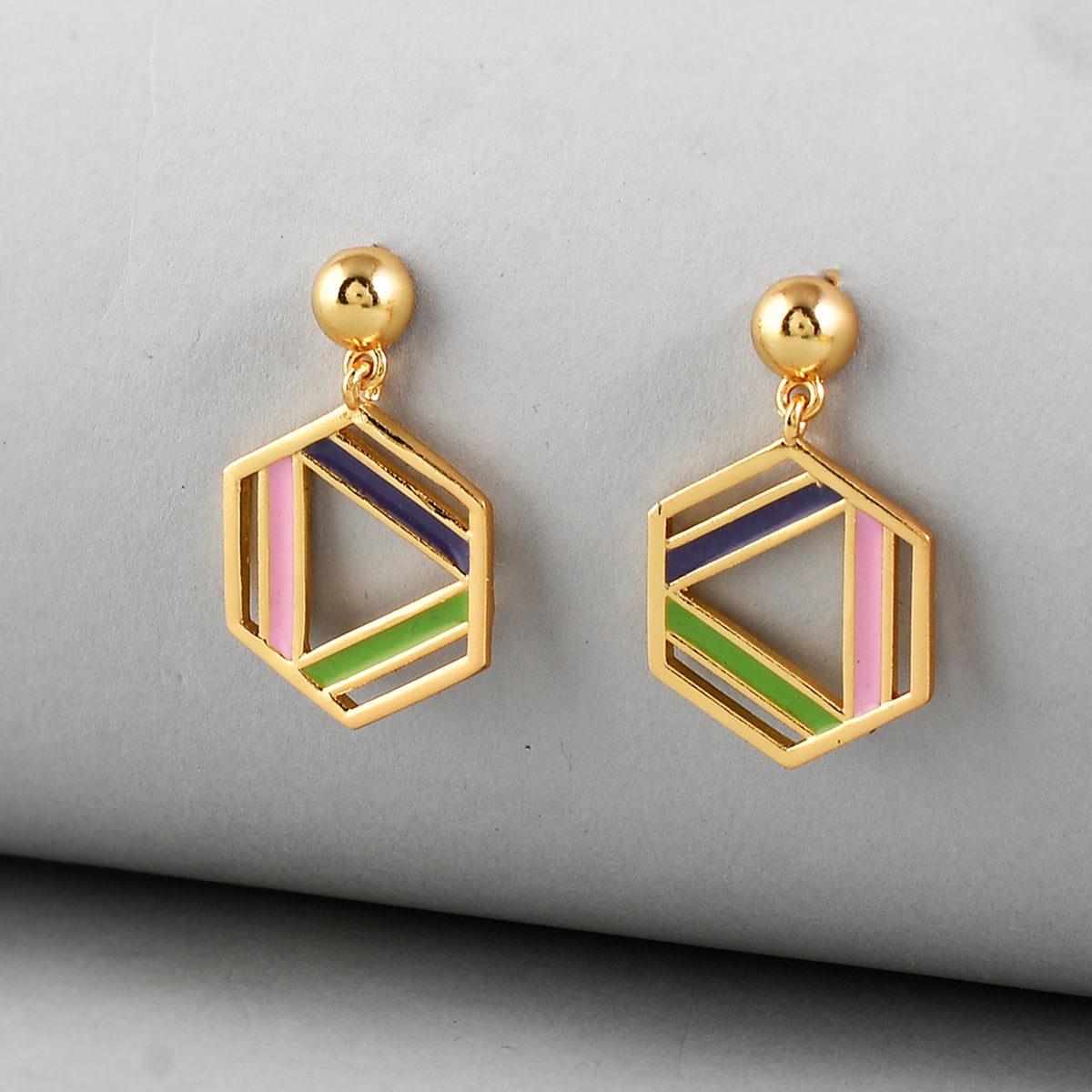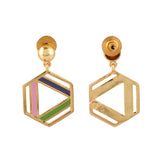 Benzene Gold Enamelled Hexagon Drop Earrings