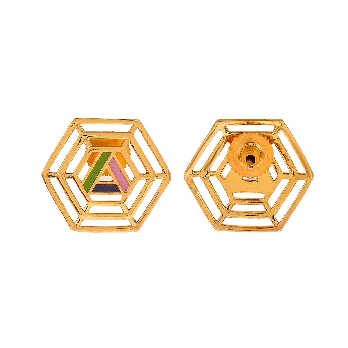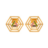 Benzene Gold Hexagon Cutwork Stud Earrings