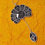 Bidri art inspired drop pendant with silver plating. Fashioned out of brass. Pair with ethnic and Indo-Western looks.