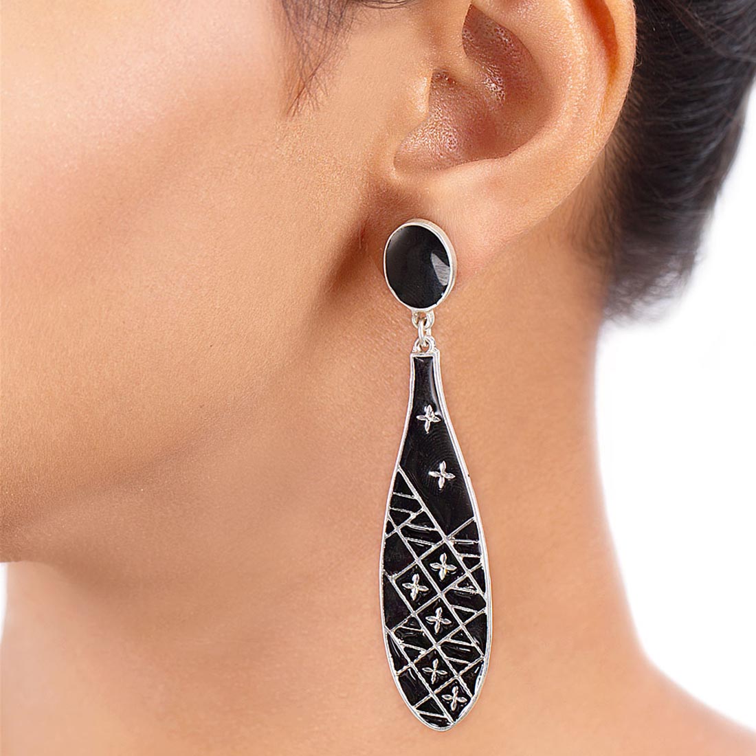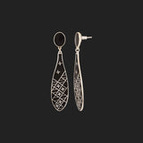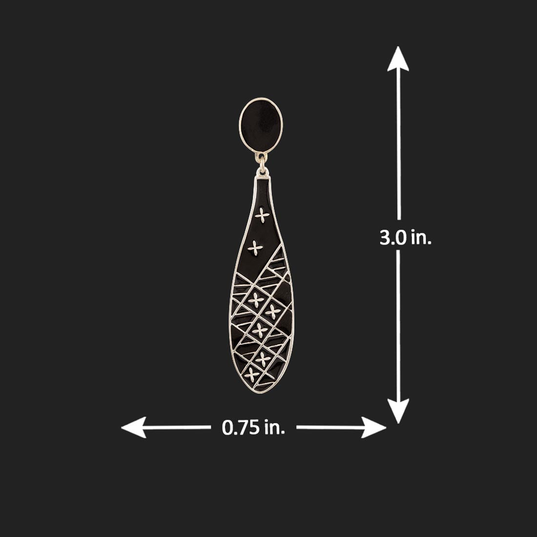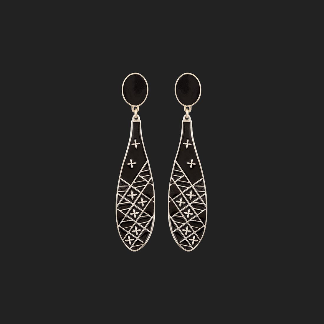 Tribal inspired drop earrings made from brass. Silver plated and a good match for ethnic looks.