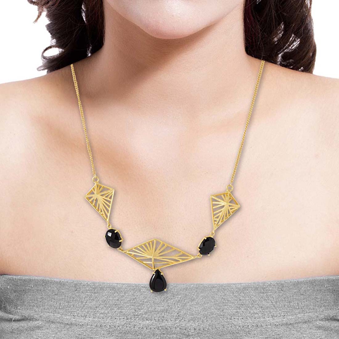 Black Stone Studded Modern Necklace