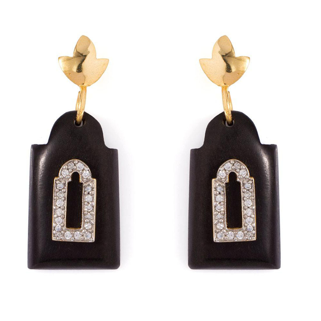 This stunning and classic black stud earrings adorned with glitzy American Diamond will lift up the style quotient of any outfit, whatever the occasion.Pretty indulgence to add in your jewelry collection.