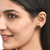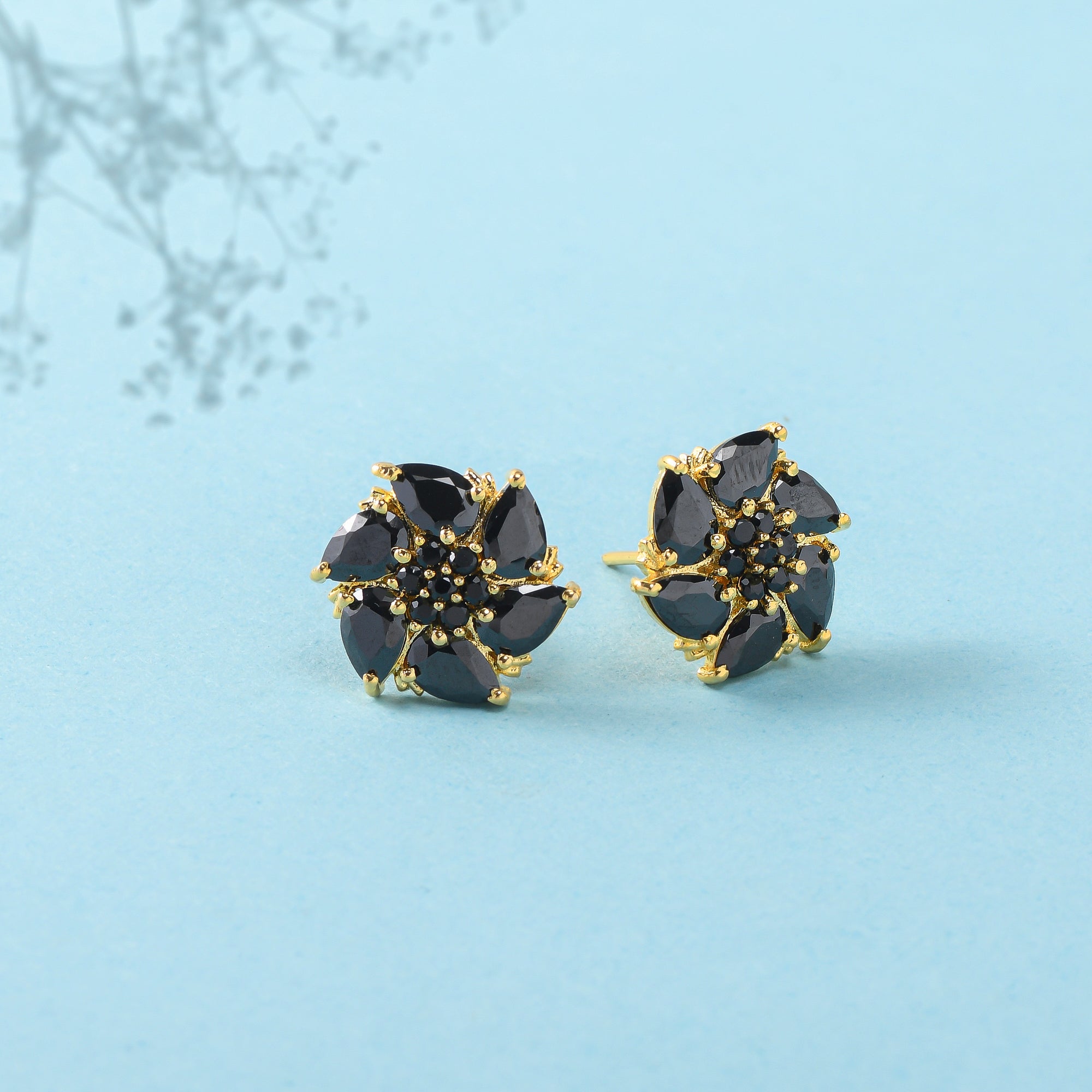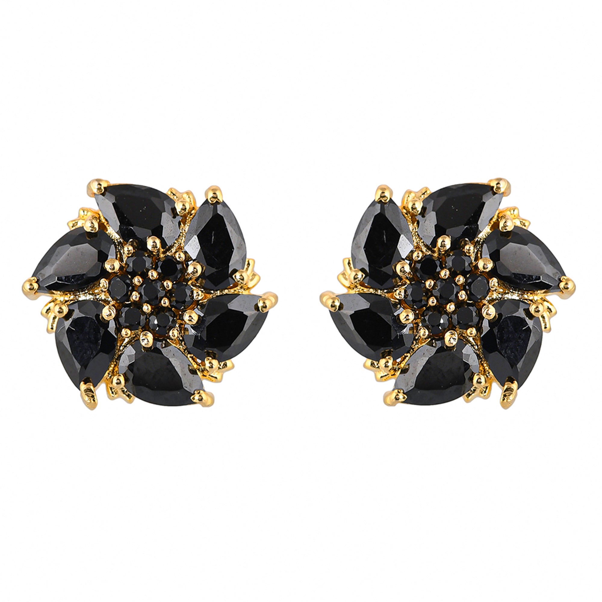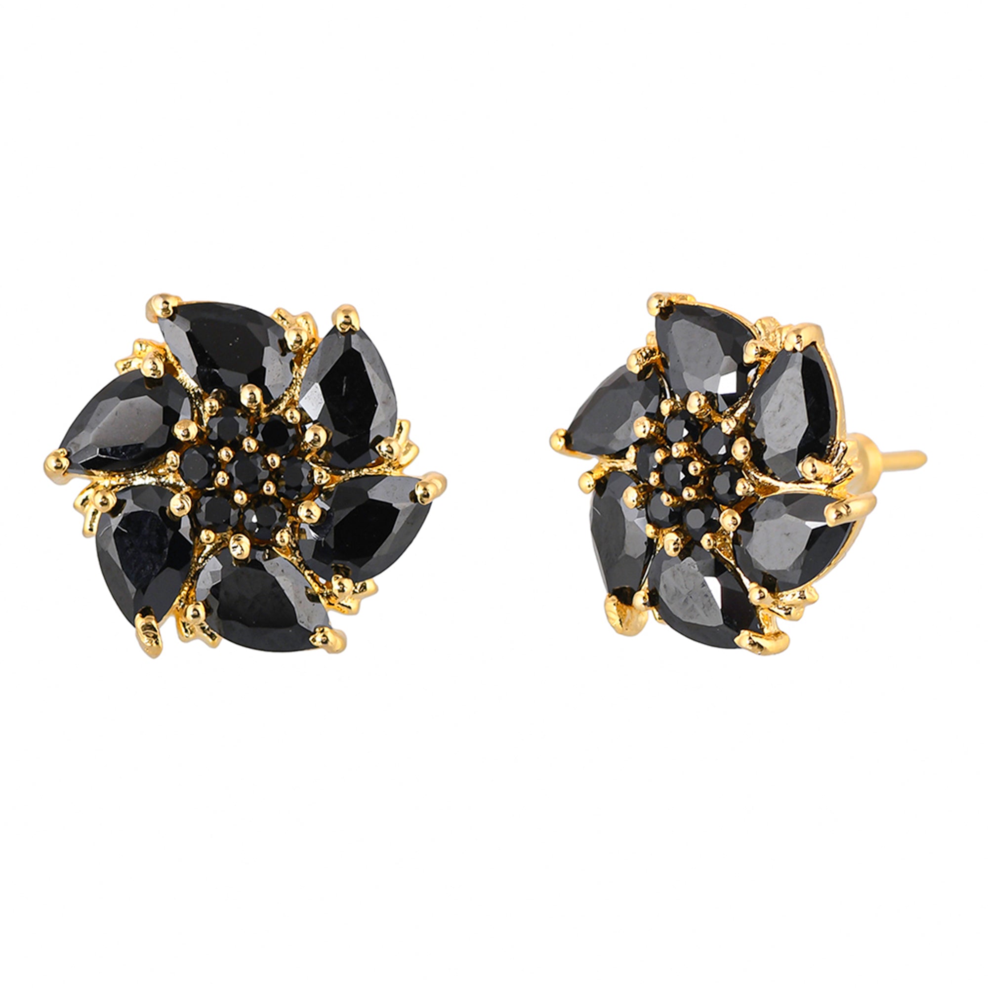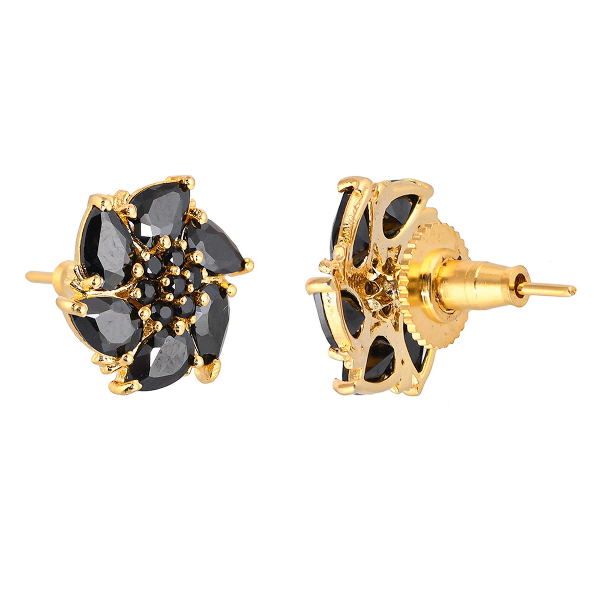 Stud style earrings with black cubic zirconia gemstones. Made from brass and gold plated. Good for casual looks.