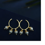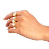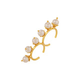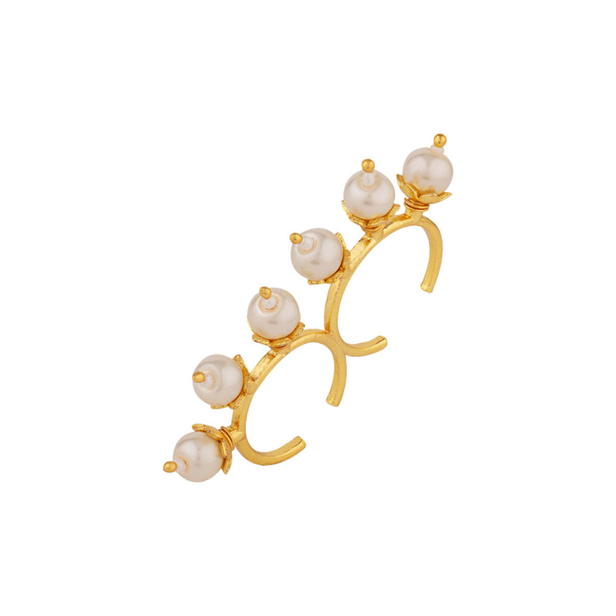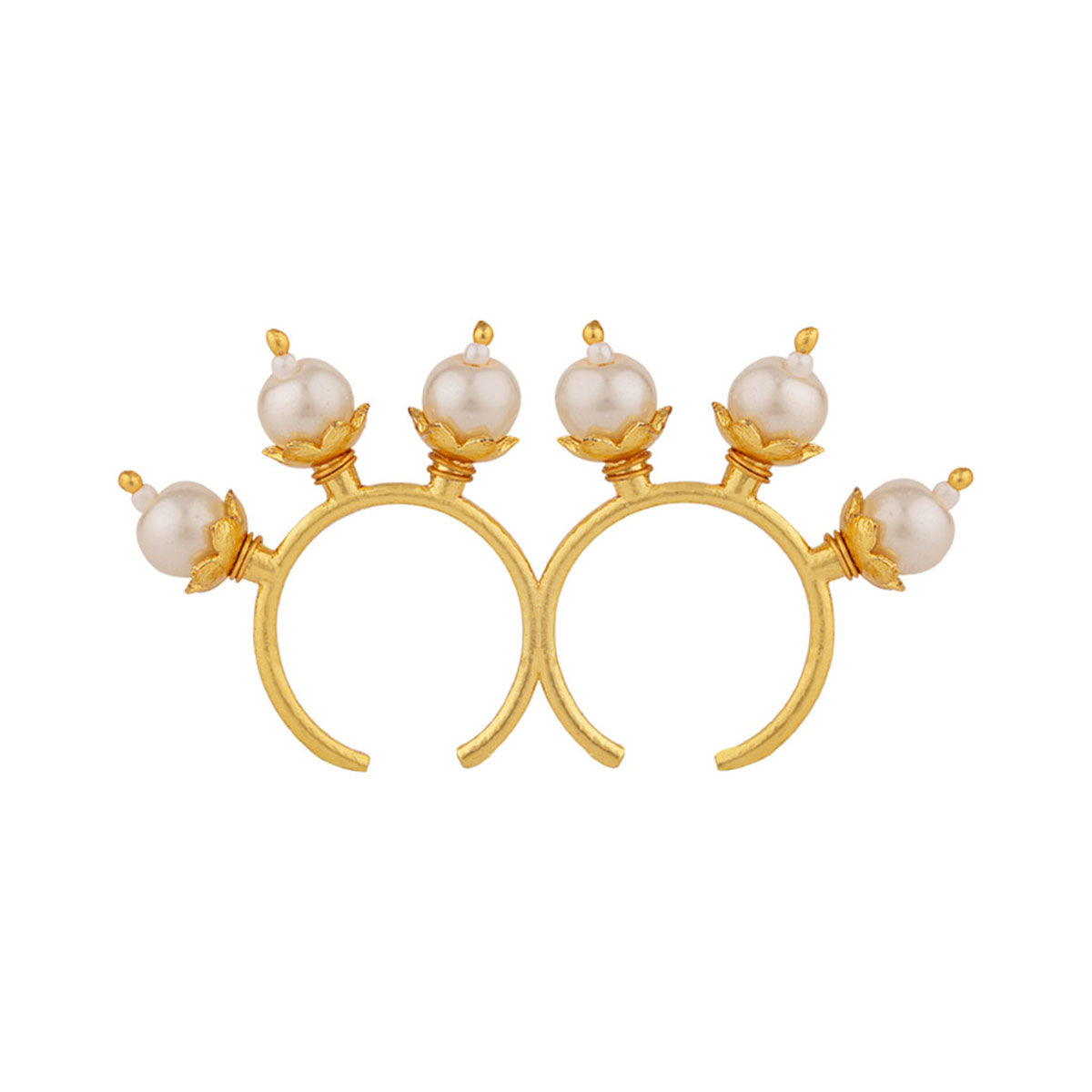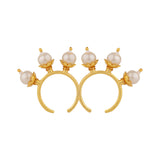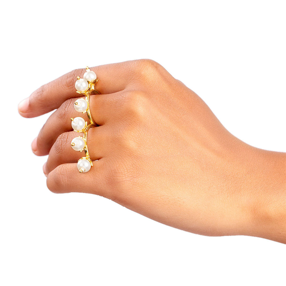 Two finger brass ring with yellow gold plating and faux pearl embellishments. Pair with any of your faovurite party outfits.