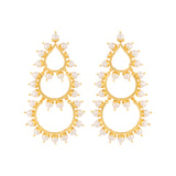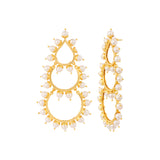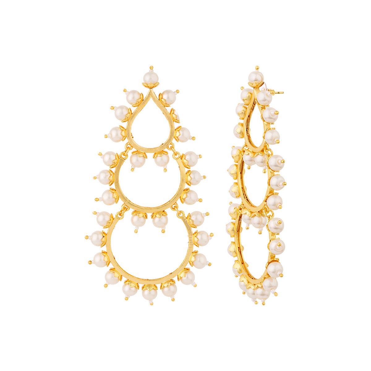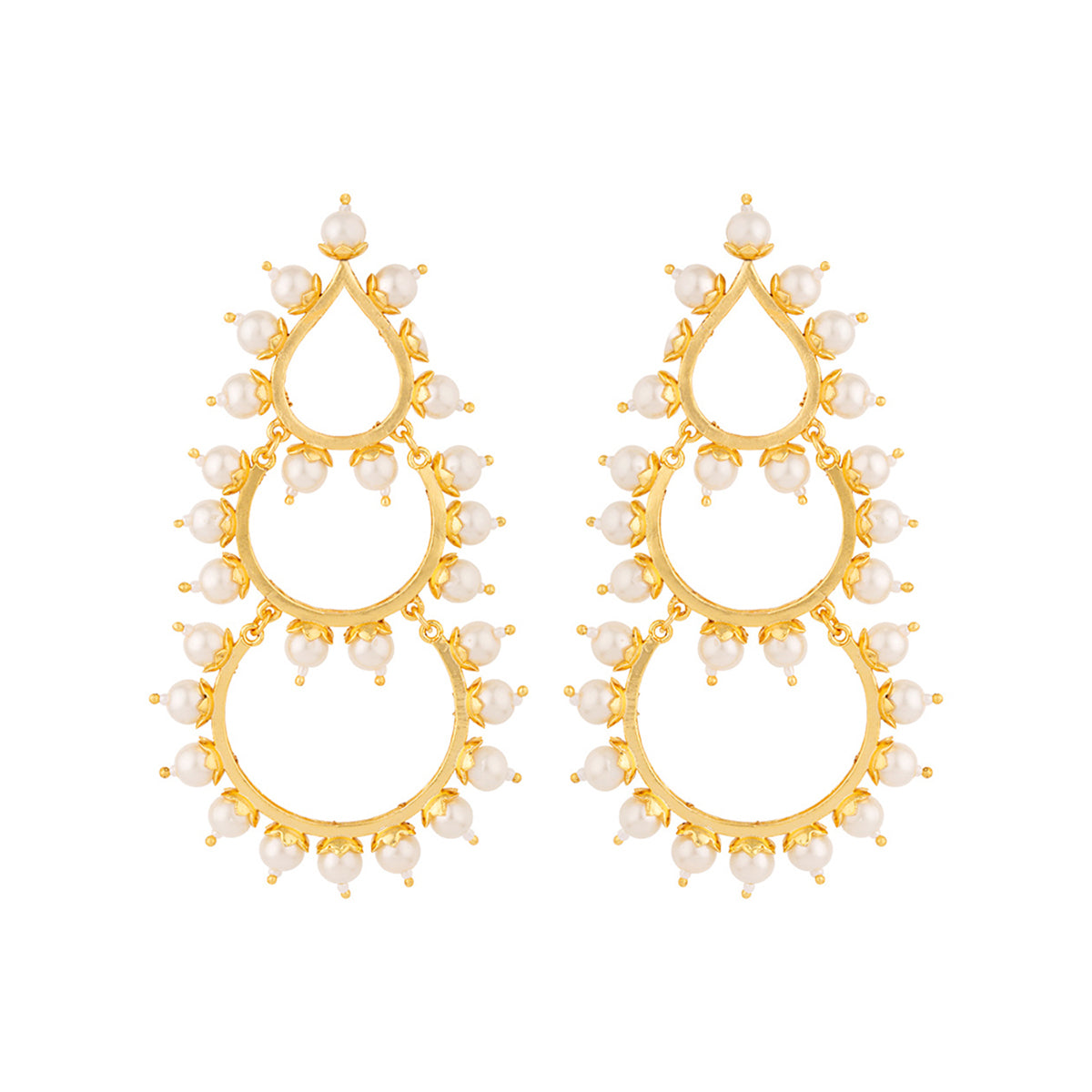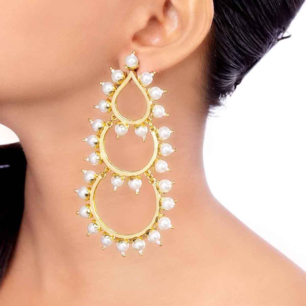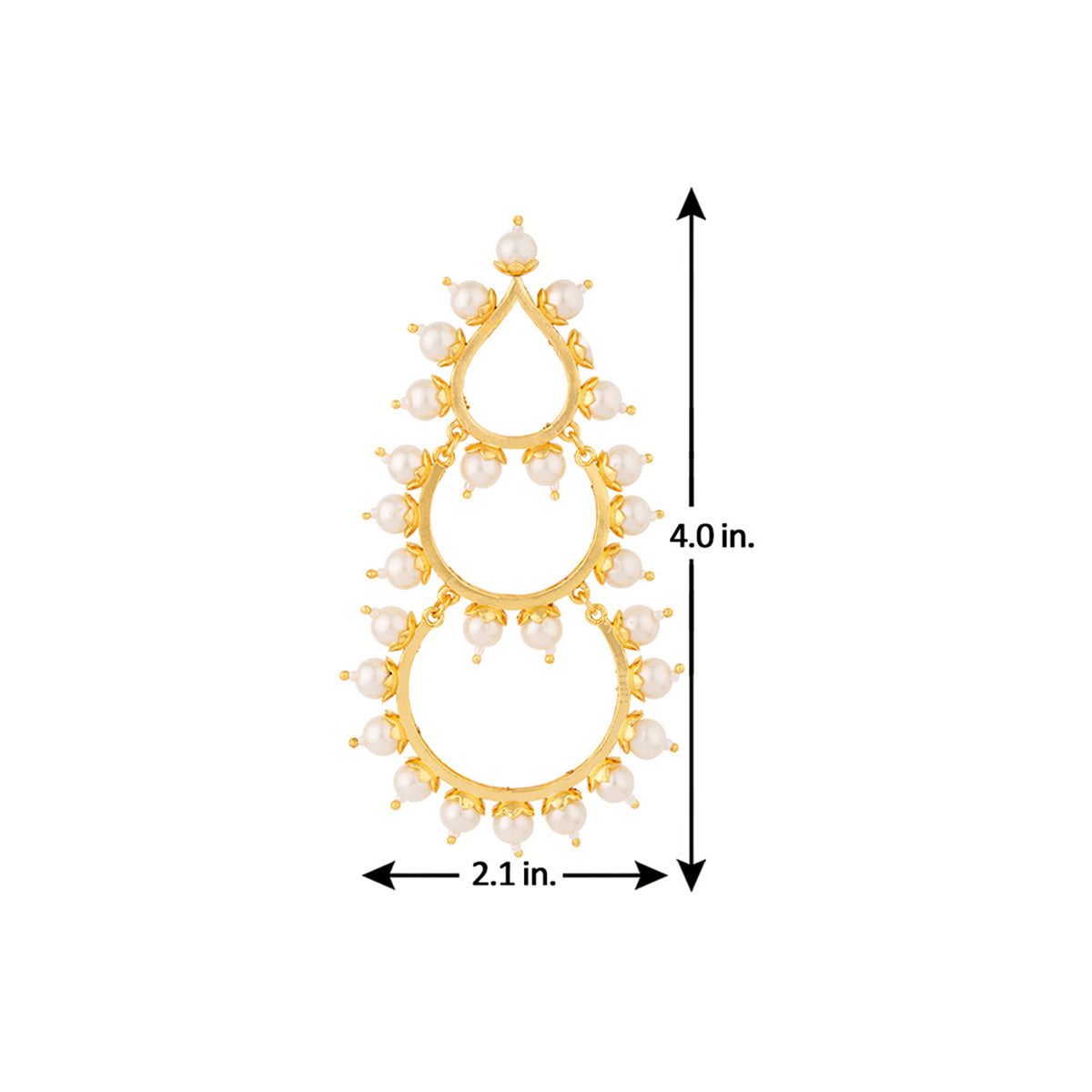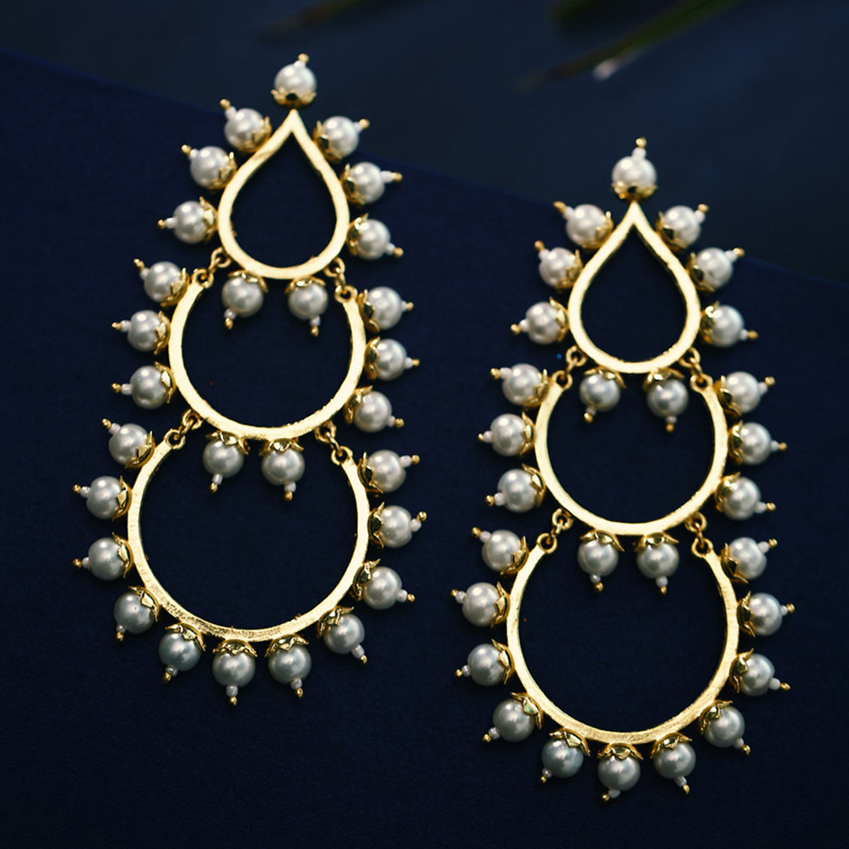 Layered style drop earrings, made from brass and yellow gold plated. Adorned with faux pearls, the pair can be worn with formal ethnic outfits.