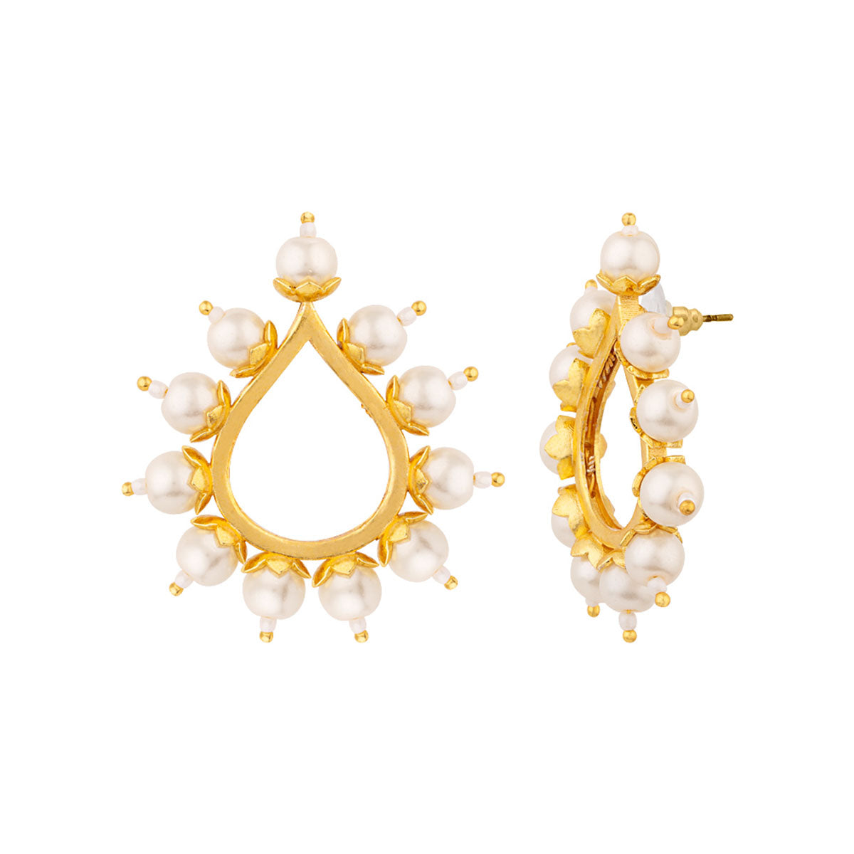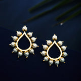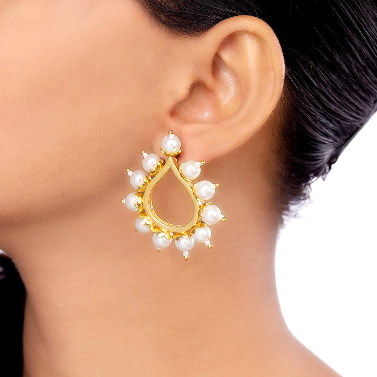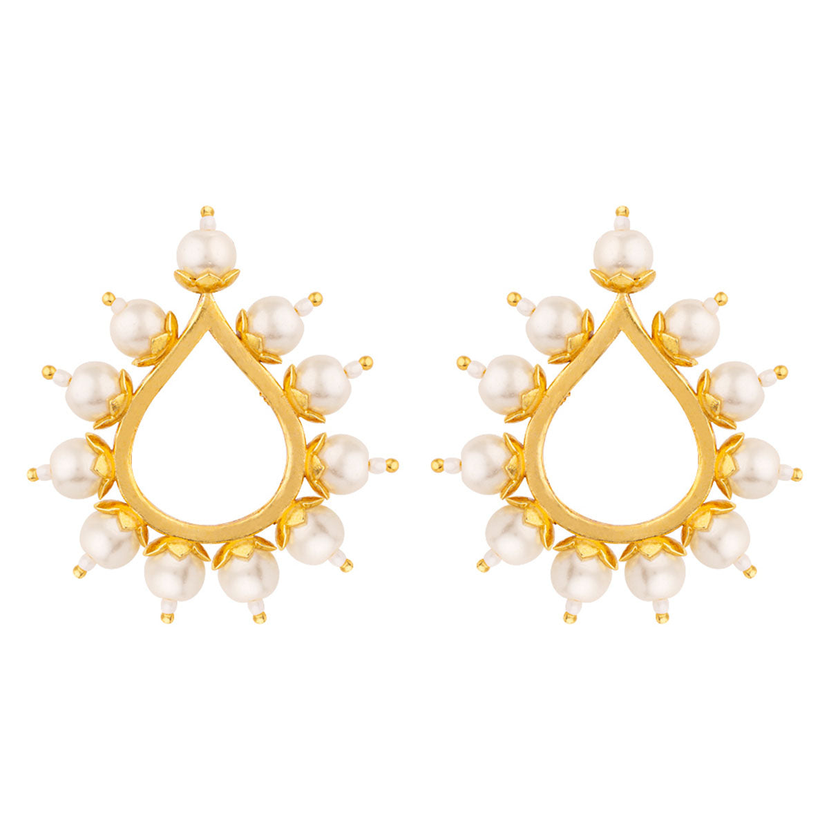 Teardrop shape earrings made from brass. Yellow gold plated and embellished with faux pearls. Pair with an anarkali kurta. This piece of jewelry comes with the Voylla assurance of quality and durability. Caring for your fashion jewelry: We, at Voylla, take care of every piece of jewelry so that you don't spend hours caring for them.