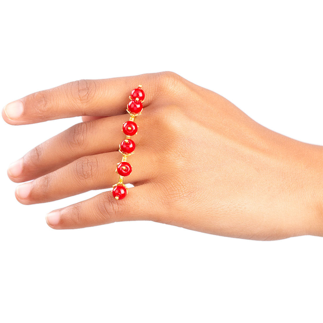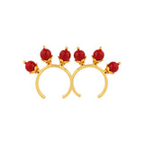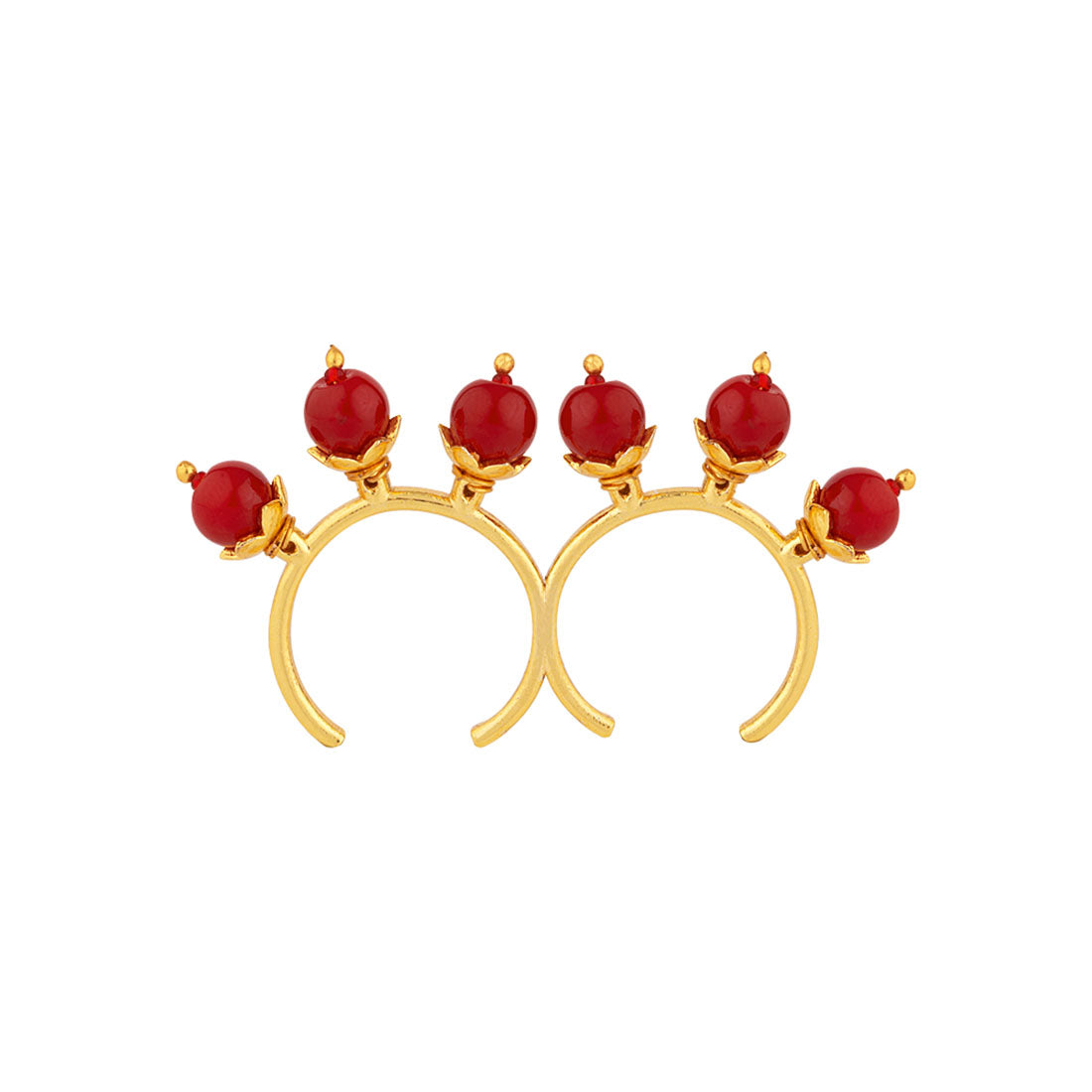 Double finger ring fashioned after vintage jewelry. Made from brass, yellow gold plated and a perfect match for ethnic and Indo-Western attire.