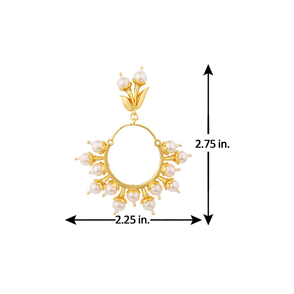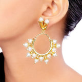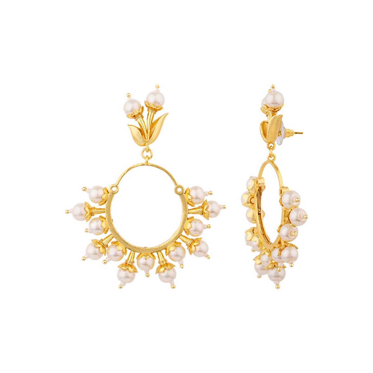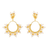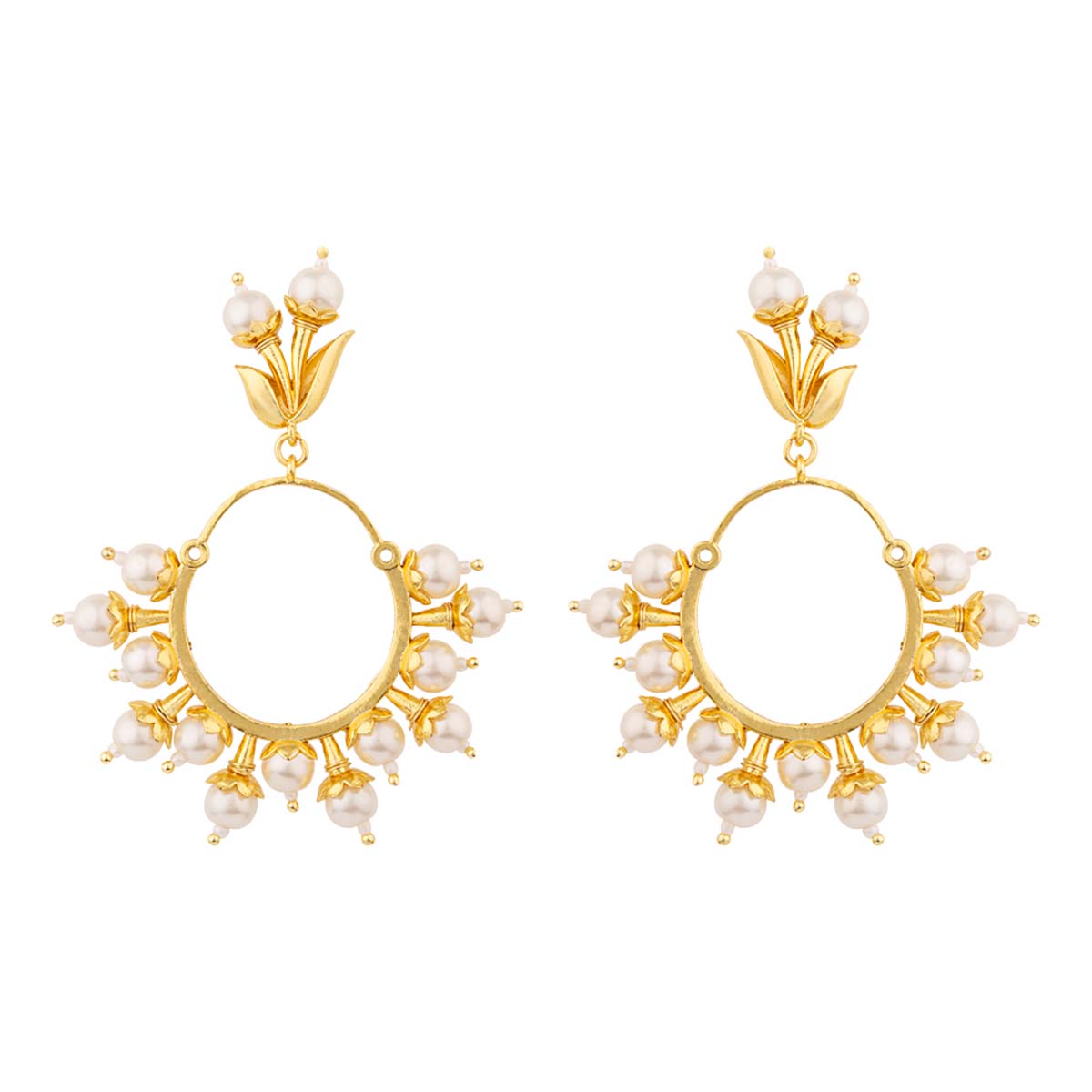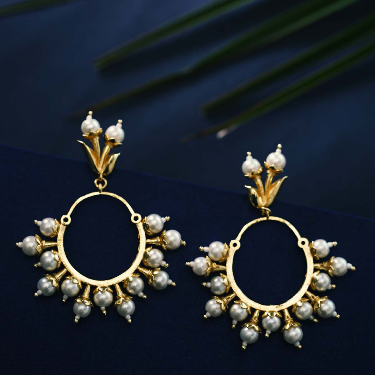 Vintage inspired brass earrings, adorned with faux pearls. The yellow gold plated earrings will look splendid with a casual summer dress.