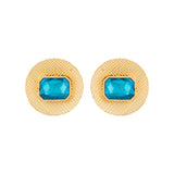 Blue Amun Disc Stud Earrings