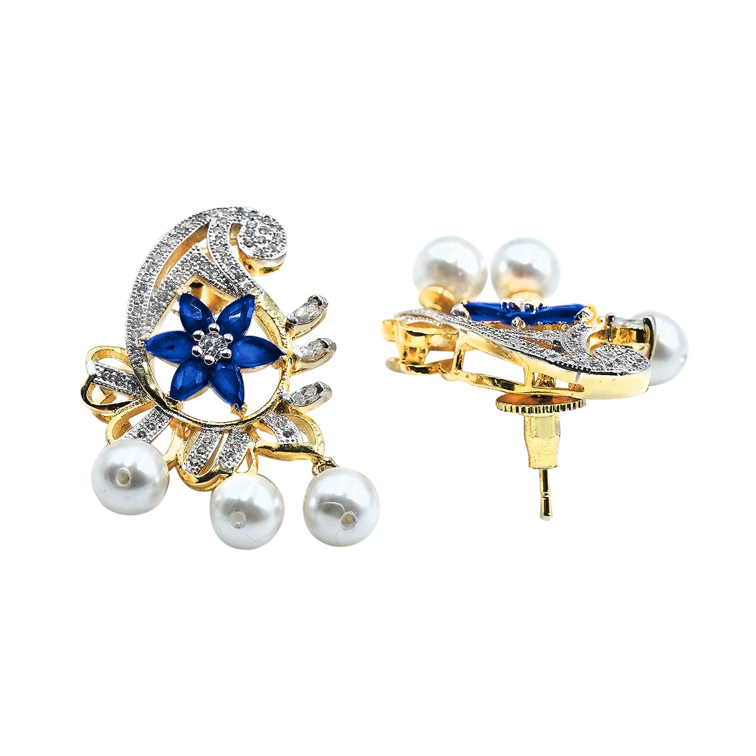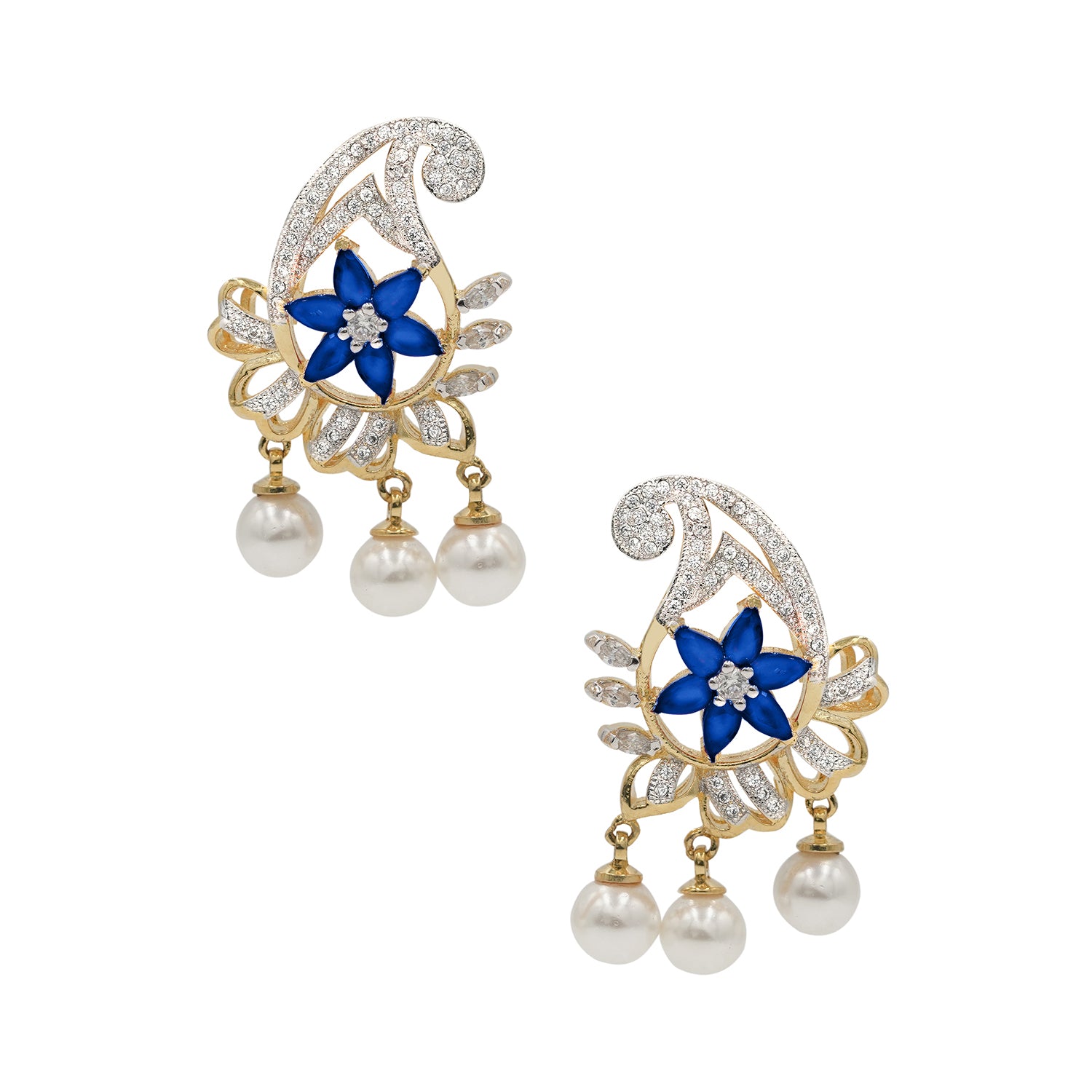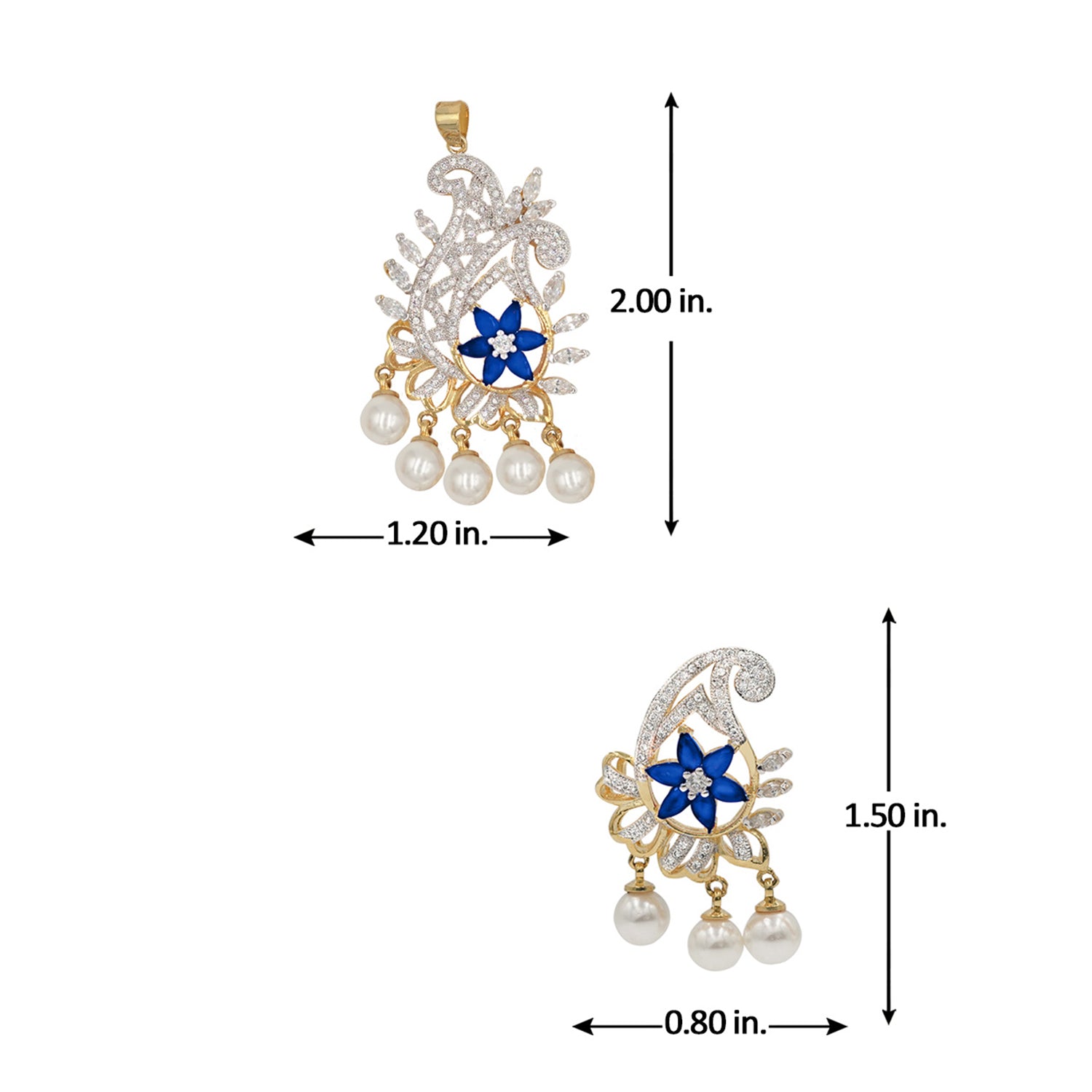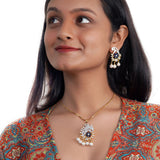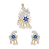 This is a stunning serene pendant and earring set made using high-quality brass. The gold plating blends in well with the blue American Diamond along with pearls and offers a vibrant and youthful appeal to your attire. If you want to look younger and flaunt your fashion sense, finding a classier piece can be very difficult.