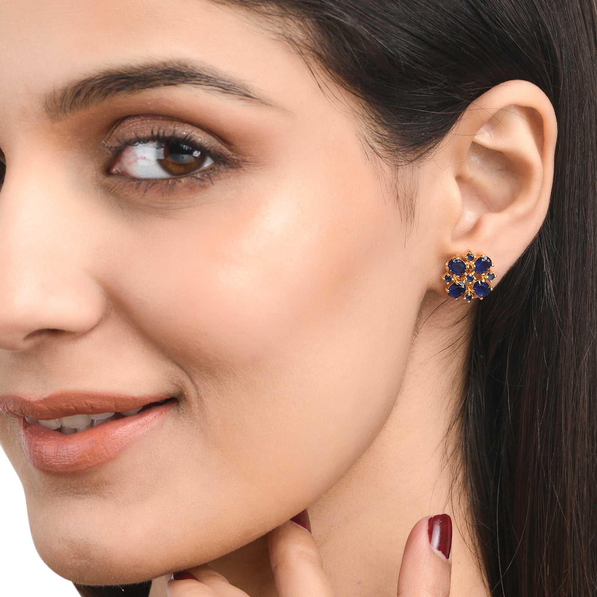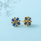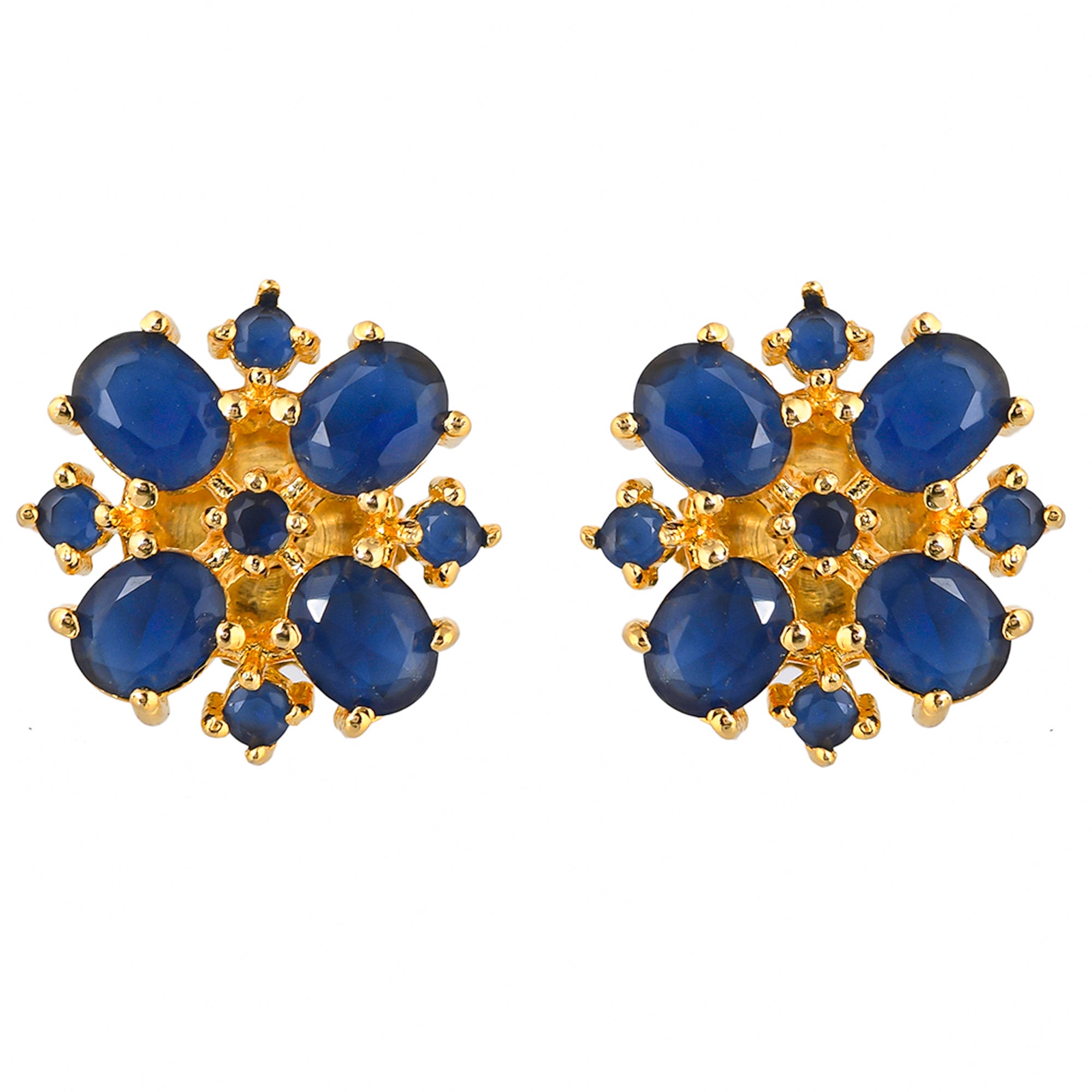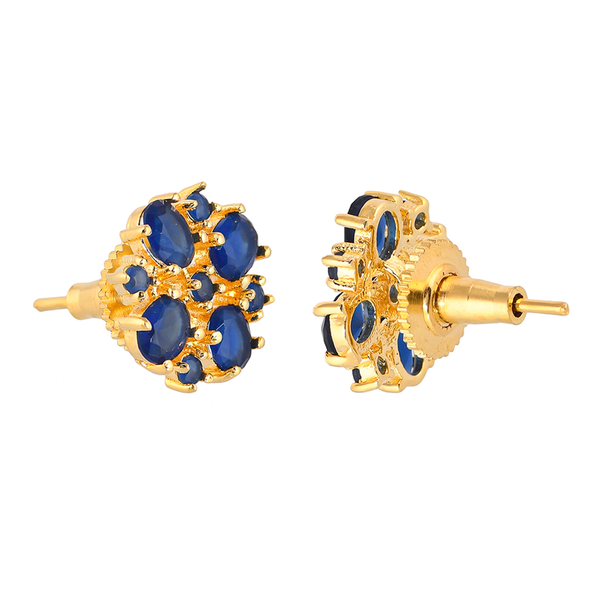 Blue zirconia gems in a classic round cut adorn these stud earrings. Gold plated and a good match for casual looks.