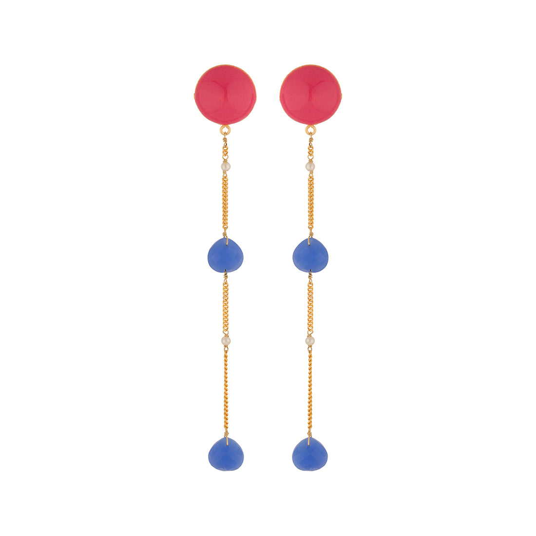 Add definition to your look with this pair of interestingly designed chain danglers adorned with blue stones that will make your look royal and appealing. These are safe for your sensitive skin.