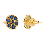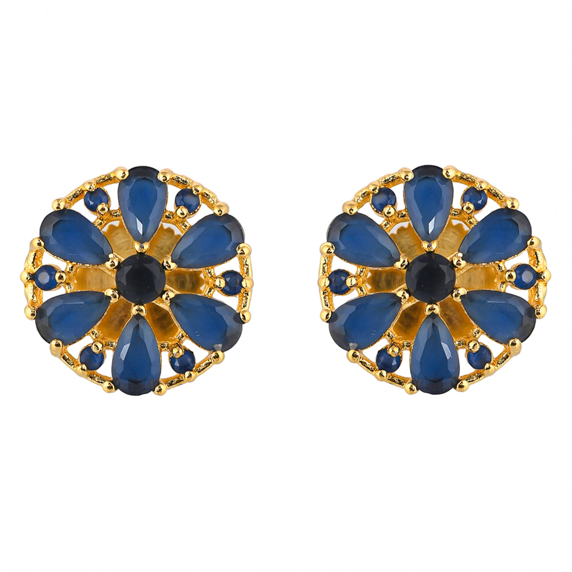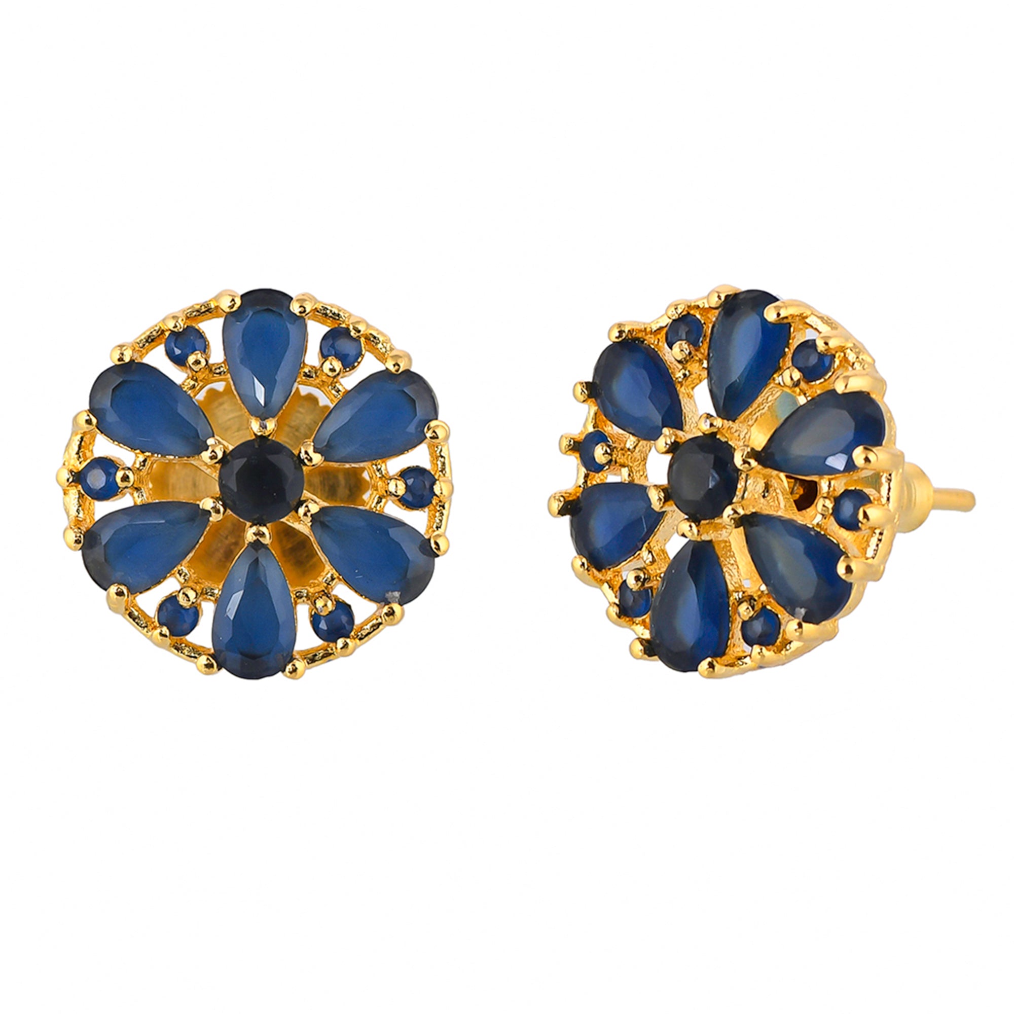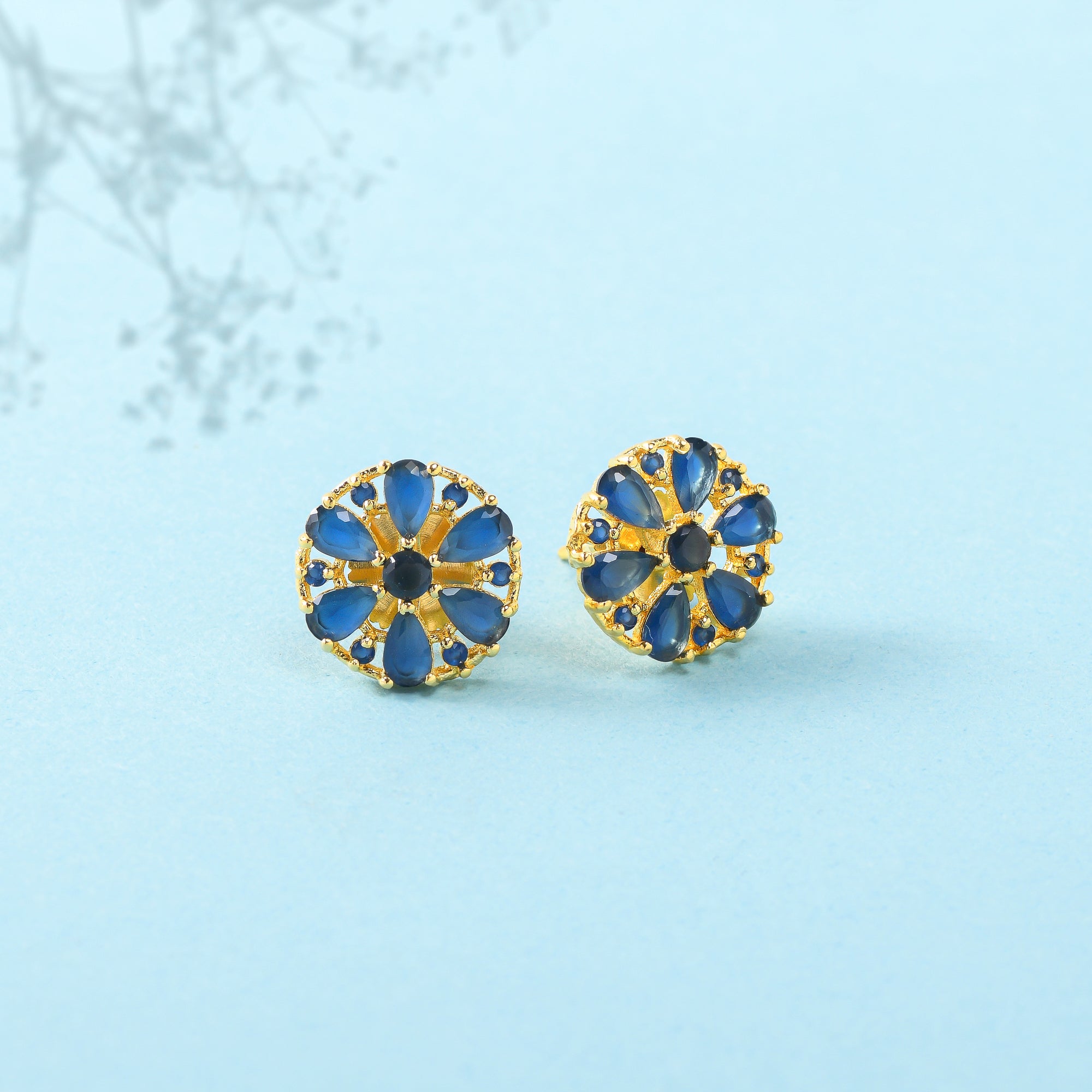 Blue Teardrop CZ Gems Gold Plated Stud Earrings