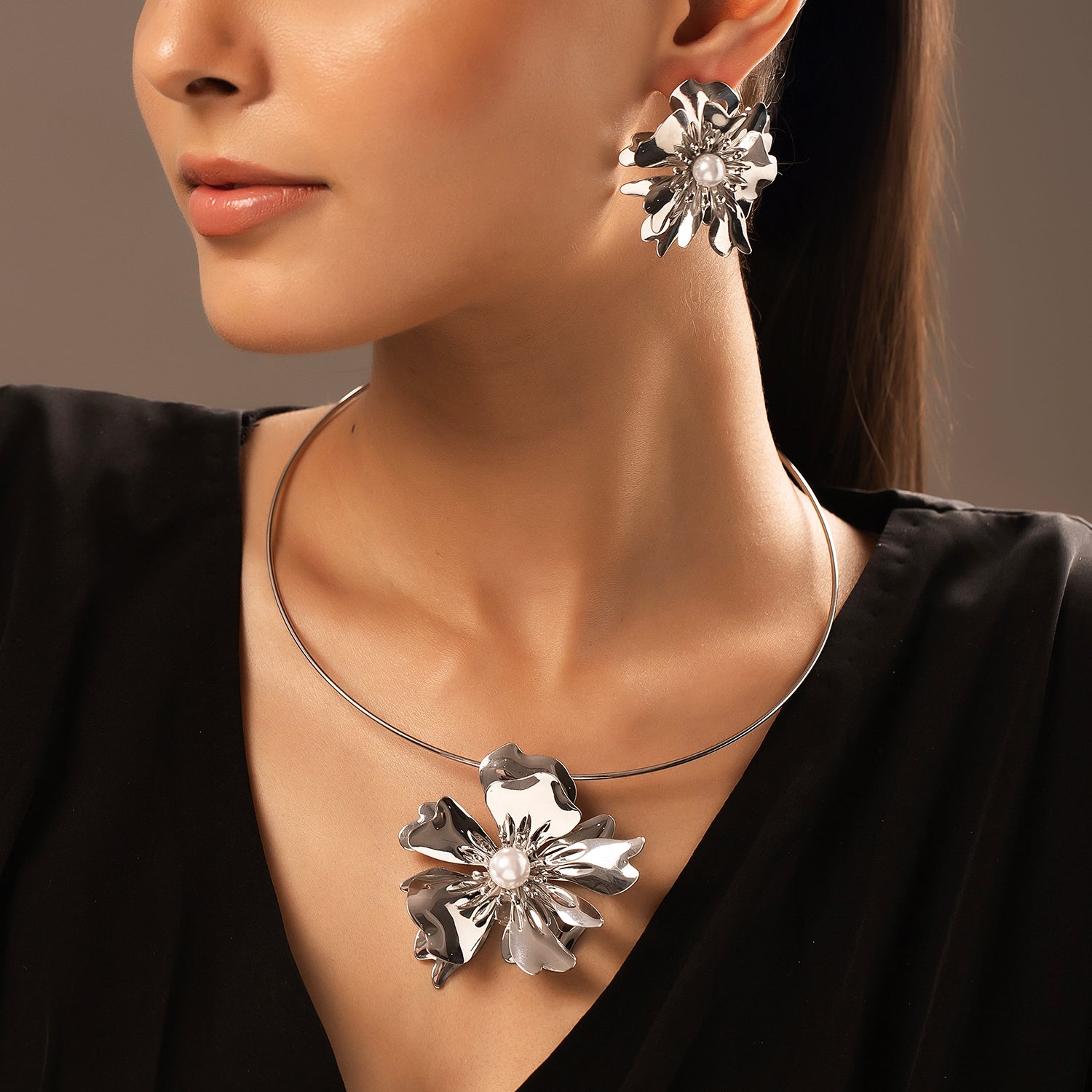 The Blume Floral Drama Pendant Set for Women is a masterpiece of elegance and modernity, crafted from high-quality alloy and adorned with a white rhodium plating that exudes sophistication. This designer set features a stunning floral motif, blending intricate detailing with a chic and trendy aesthetic. Perfect for parties, office wear, or vacation outings, the pendant and matching stud earrings are versatile enough to complement both Western and traditional attire. The polished finish and lightweight design ensure comfort and durability, making it ideal for everyday wear or special occasions. Whether you're styling it with a sleek dress for Valentine's Day or pairing it with festive outfits for Diwali or Rakshabandhan, this statement pendant set is a thoughtful gift for women of all ages—be it your sister, girlfriend, wife, mother, or friend. Its timeless appeal and unique design make it a must-have addition to any jewelry collection, perfect for expressing love and appreciation during Christmas, New Year, Eid, or even Holi celebrations.