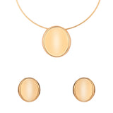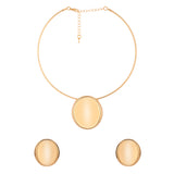 The Blume Golden Orbit Minimal Luxe Pendant Set is a breathtaking blend of sophistication and modern elegance, designed for women who appreciate refined artistry. Crafted from premium alloy with a radiant yellow gold plating, this set includes a sleek, oval-shaped pendant paired with matching stud earrings. Its chic and minimalistic design exudes contemporary charm, while the warm golden hue adds a timeless allure, making it a must-have for any jewelry collection. Perfect for everyday wear or special occasions, this statement pendant set transitions effortlessly from office jewelry to a party essential, chic vacation wear, or even a thoughtful Eid or Valentine’s Day gift. Part of the distinguished Blume collection, the set is celebrated for its unique Korean-inspired aesthetics, merging global trends with enduring style. Whether it’s styled with a crisp white blouse for office chic or a floral sundress for a casual outing, this versatile piece complements a range of outfits and accessories, making it an exceptional gift for sisters, girlfriends, wives, mothers, or friends on occasions like Rakshabandhan, Diwali, Christmas, or New Year. A symbol of understated luxury, this Western designer pendant set is all about making an impression with grace and simplicity.