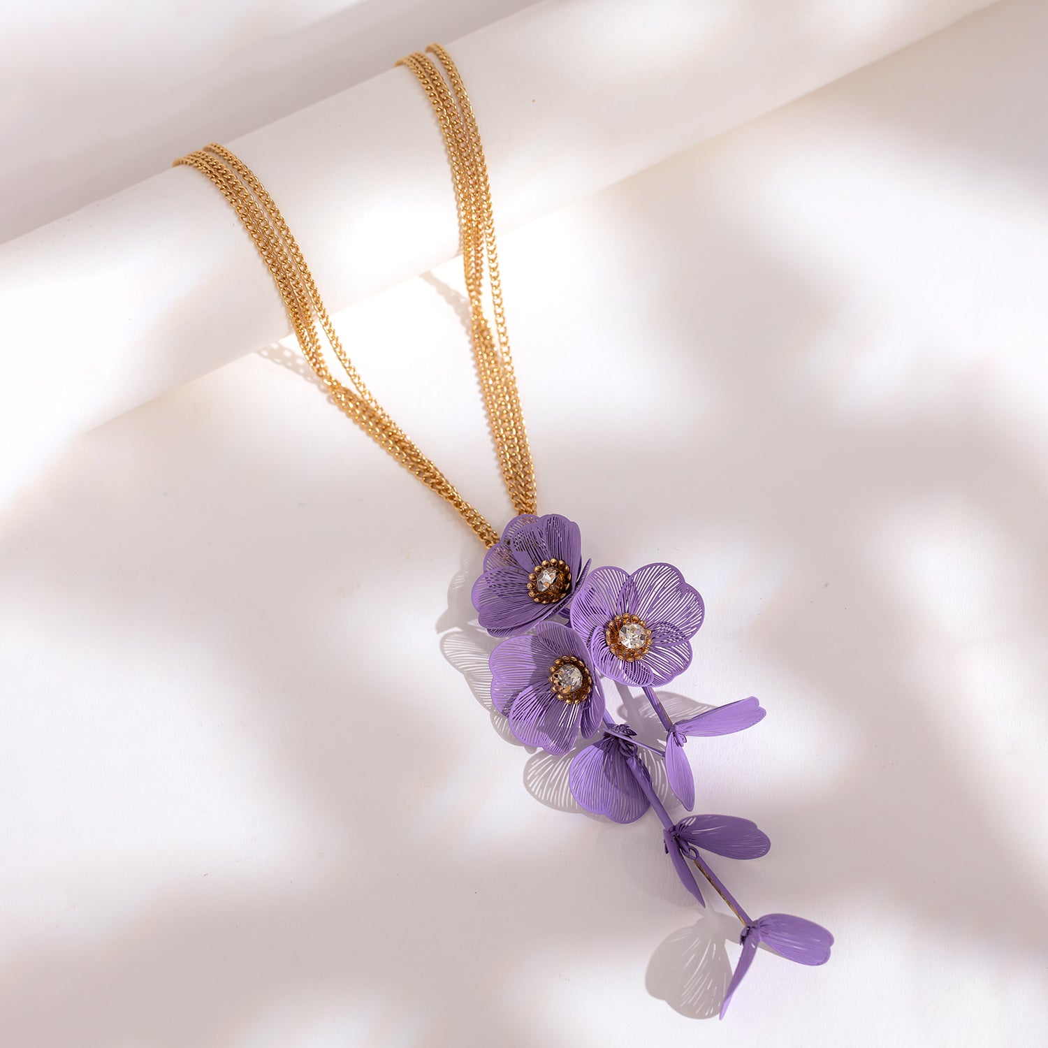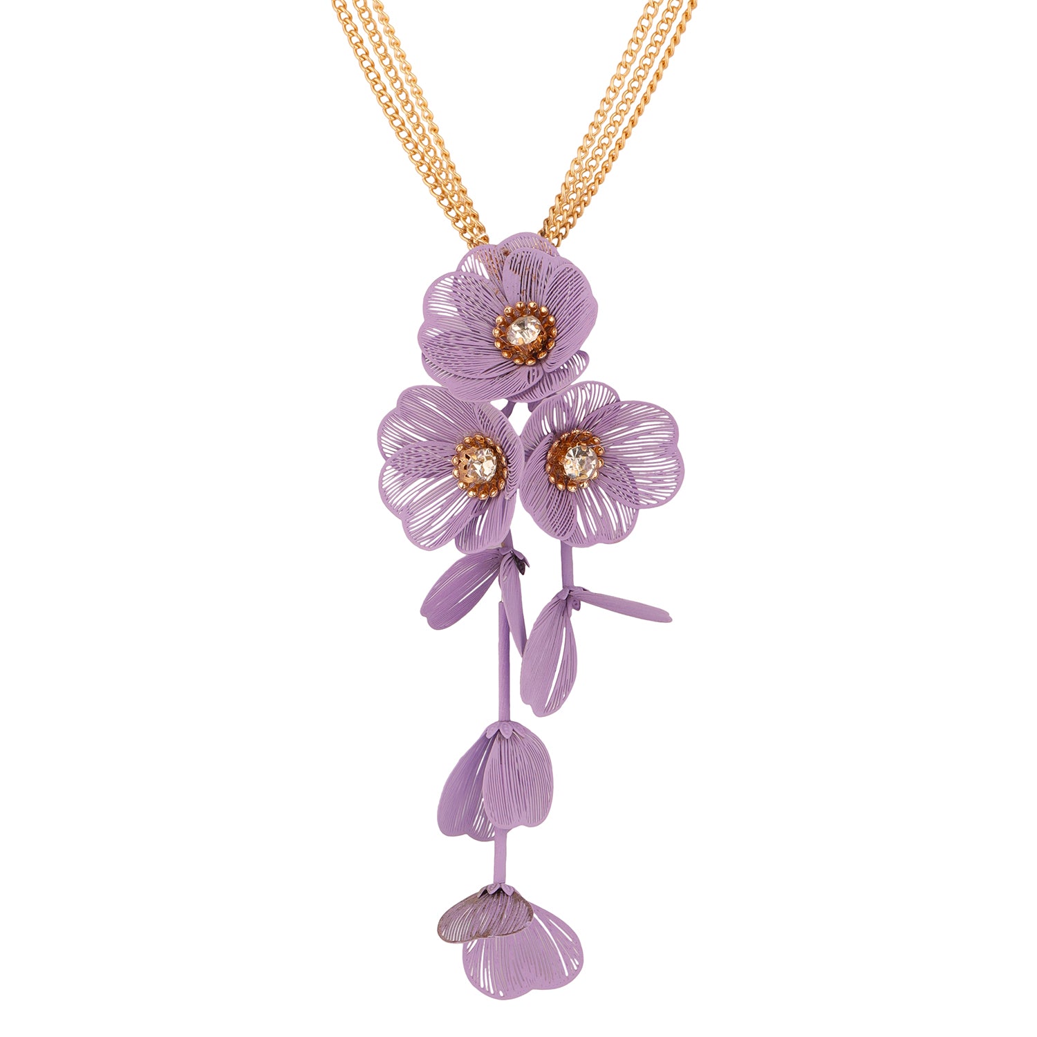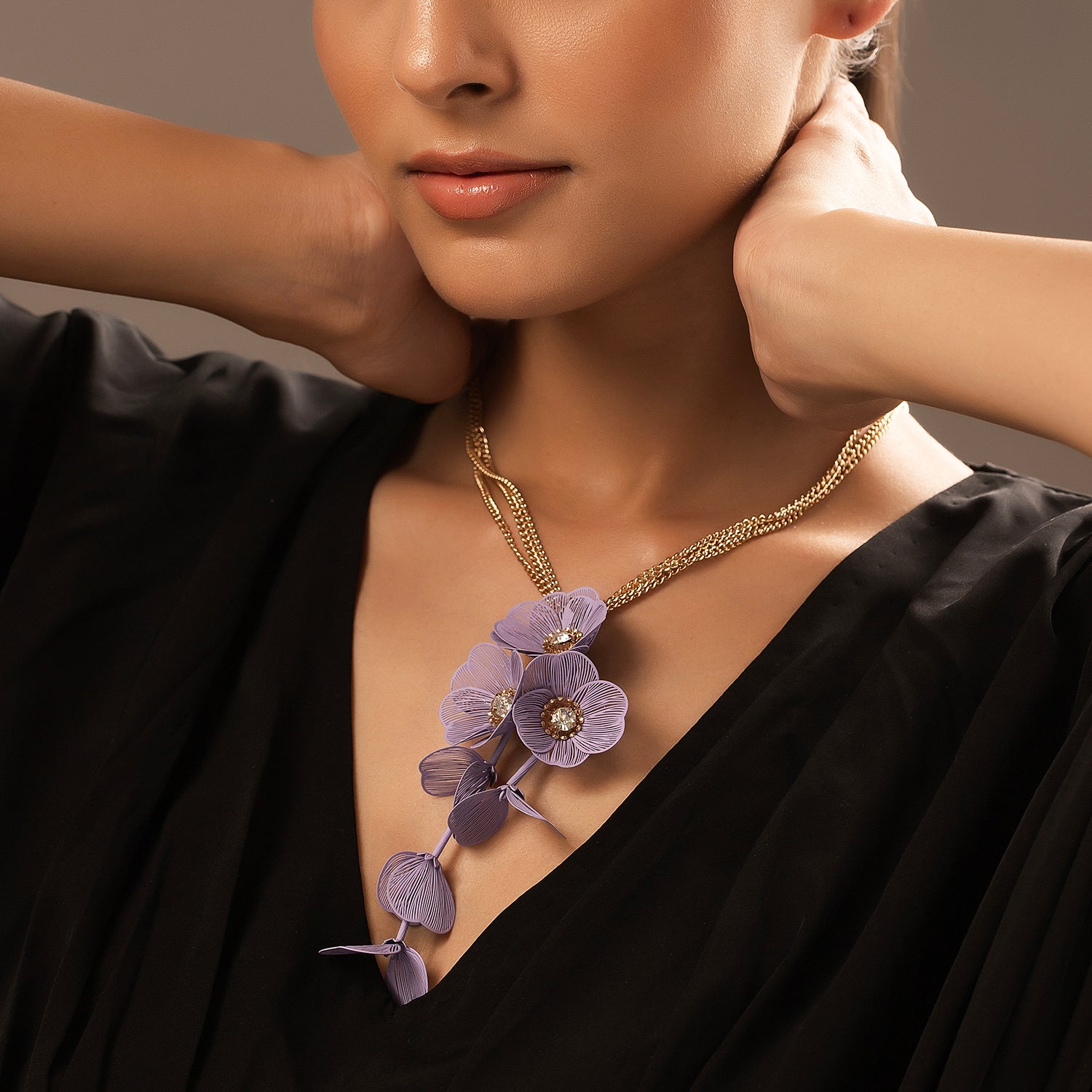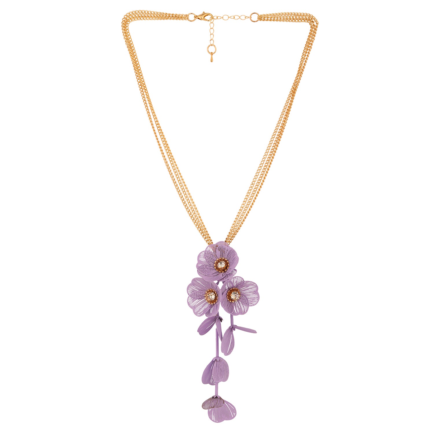 Step into elegance with the Blume Moonflower Lavender Dream Pendant, a mesmerizing blend of delicate design and exceptional craftsmanship. Made with premium alloy and plated in rich yellow gold, this pendant celebrates nature's beauty with its intricate floral patterns inspired by the moonflower, accented by radiant lavender hues and shimmering studs. Part of the exquisite Blume collection, it is a versatile piece that transitions effortlessly between statement jewelry for parties, chic office wear, and casual everyday looks. Pair it with western outfits for a sophisticated charm or traditional attire for festive grandeur—it’s ideal for Eid, Diwali, Rakshabandhan, Valentine’s Day, Christmas, and beyond. A thoughtful gift for women—be it sisters, wives, girlfriends, or mothers—this pendant captures the essence of celebration and style in one unique design. With its trendy yet timeless appeal, it stands out as a chic addition to vacation wardrobes and travel adventures, making every moment special.