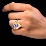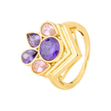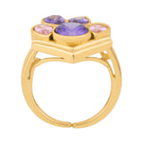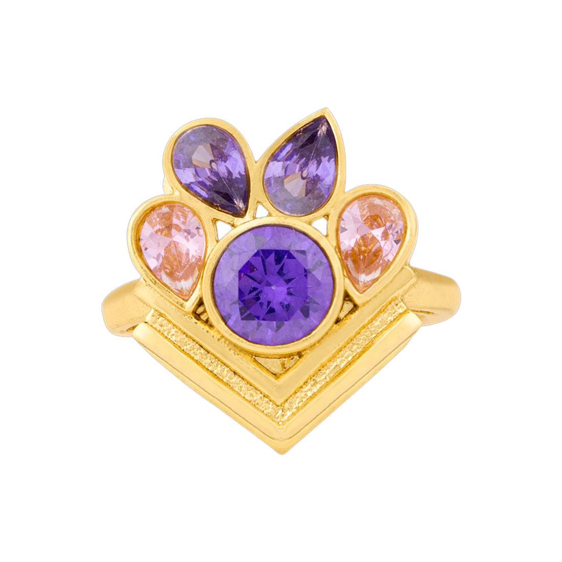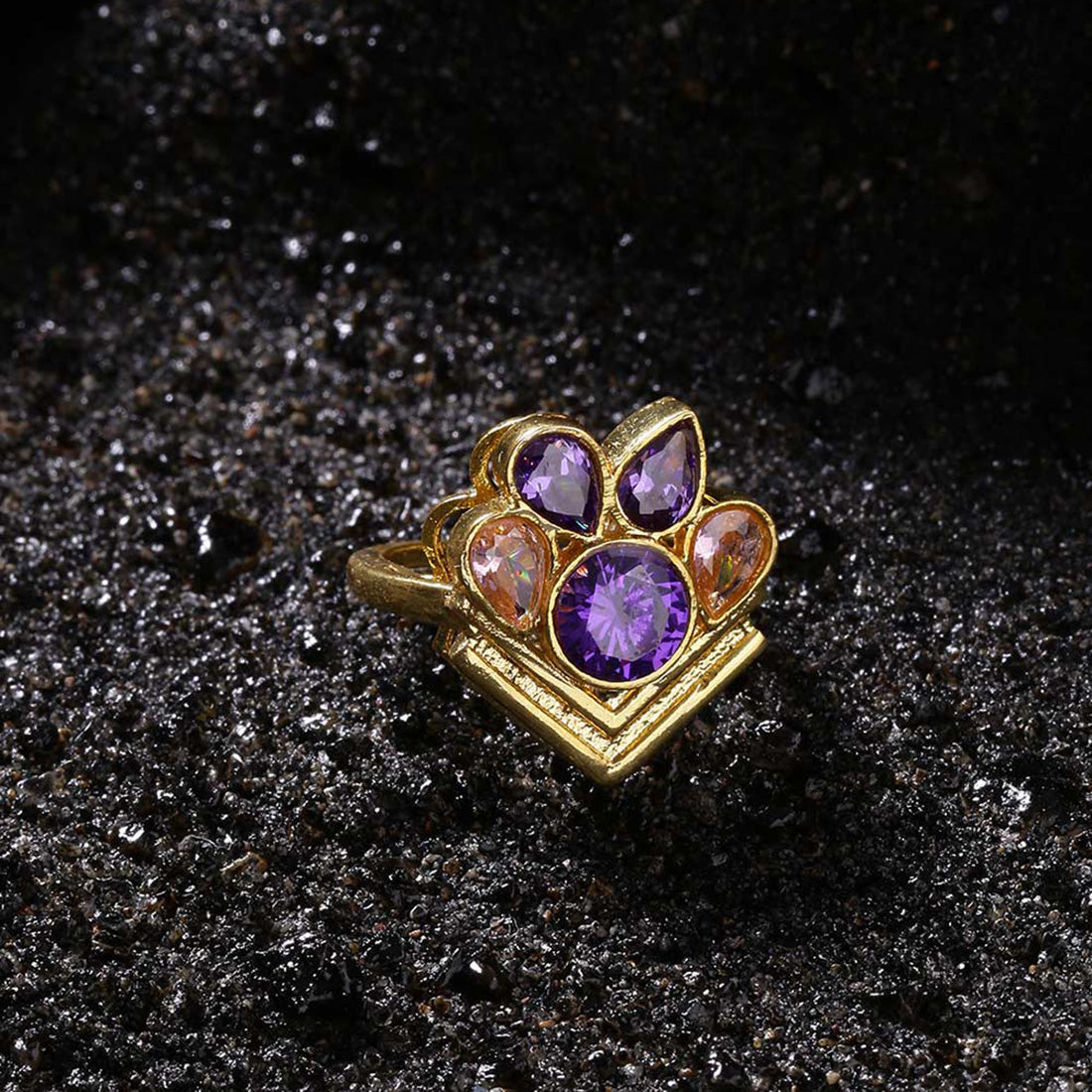 "Our Blush collection showcases this regal ring in a floral pattern, embellished with pink and purple stones. Look the Part on any Wedding Celebration by matching this with a classic anarkali suit.