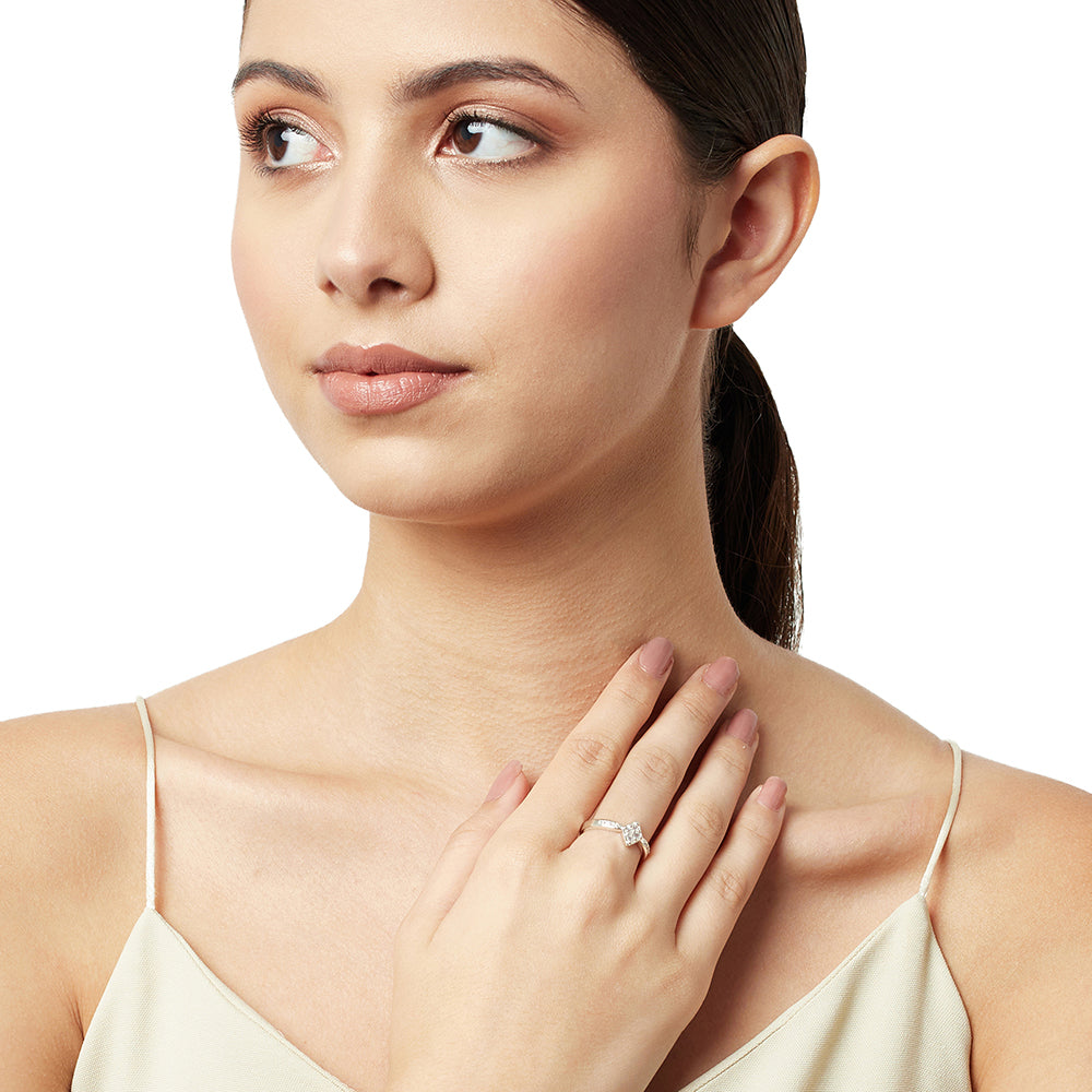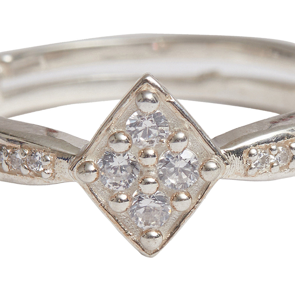 Add a touch of subtle twinkle to your ring collection with this pretty 925 Sterling Silver ring. The raised bobbles on the band add a little bit of texture which compliments the setting around the stone perfectly. Also, the narrow design of this ring makes it ideal for stacking, as with rings? more is definitely better.