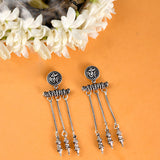 Indulge in the elegance of our Oxidized Hanging Earrings, designed to make a statement. Crafted with meticulous artistry, these earrings feature intricate oxidized detailing that adds a touch of vintage allure. Their dangling design creates graceful movement, accentuating your every step. With their unique combination of rustic charm and contemporary style, these earrings are perfect for those seeking to express their individuality with a touch of bohemian flair.