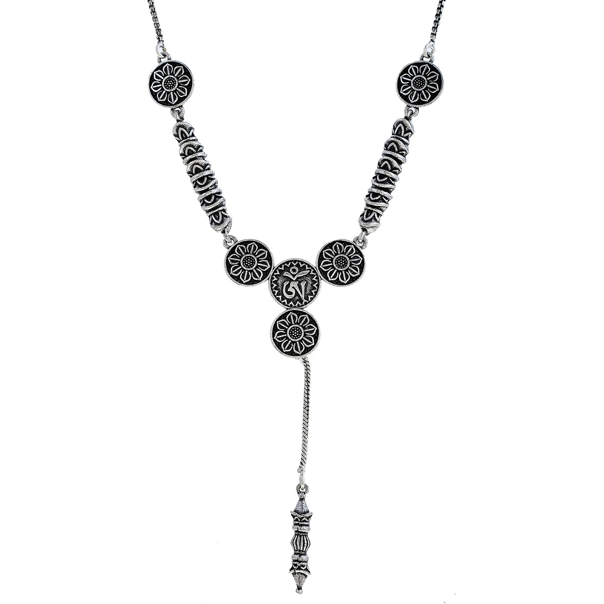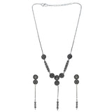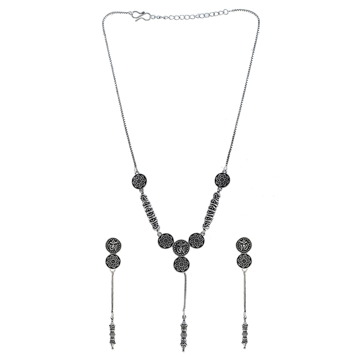 Embrace the allure of the Bodhi Collection's Oxidized Necklace Set, meticulously crafted with brass material. The oxidized detailing lends a rustic charm, making it a standout accessory for any occasion.
