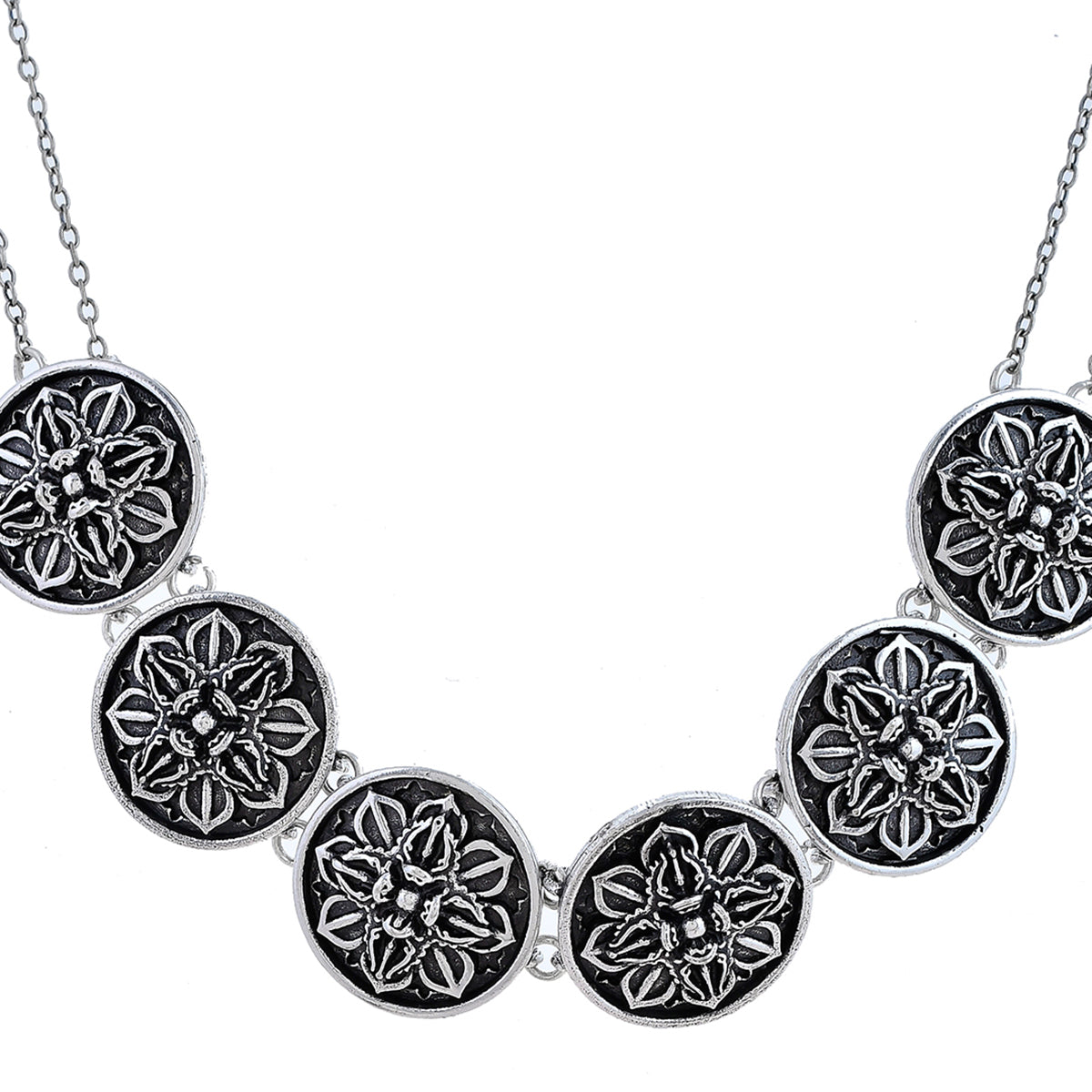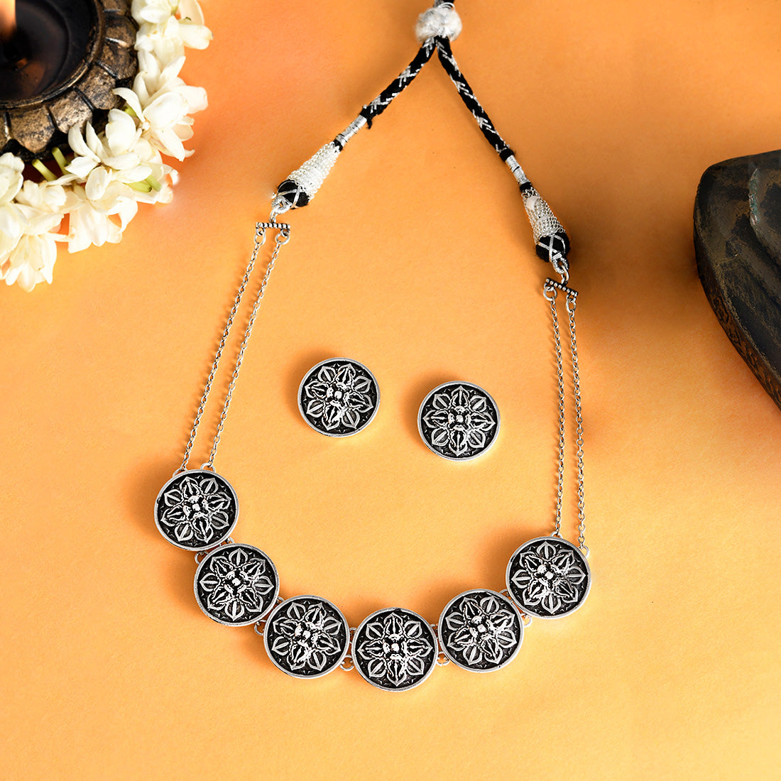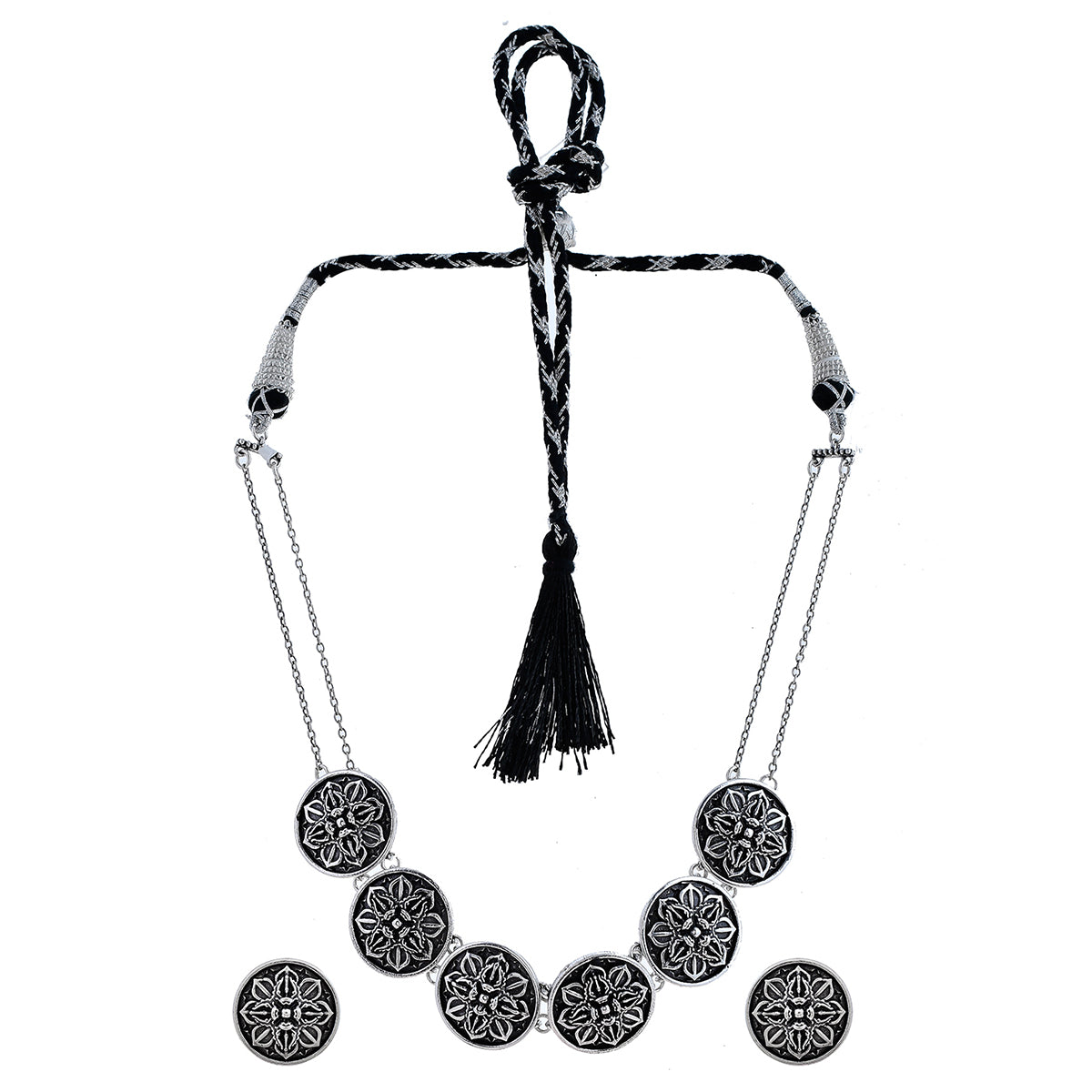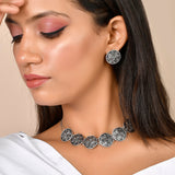 Make a statement with the Bodhi Collection Oxidized Necklace Set, crafted from brass material and adorned with an oxidized finish. The unique design and rustic appeal add a touch of bohemian elegance to your ensemble.