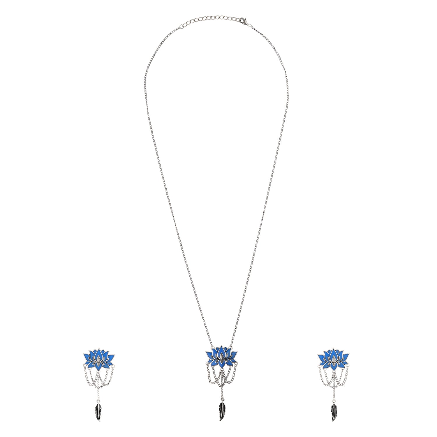 Boho Tribe Lotus Plume Oxidised Pendant Set