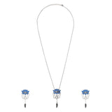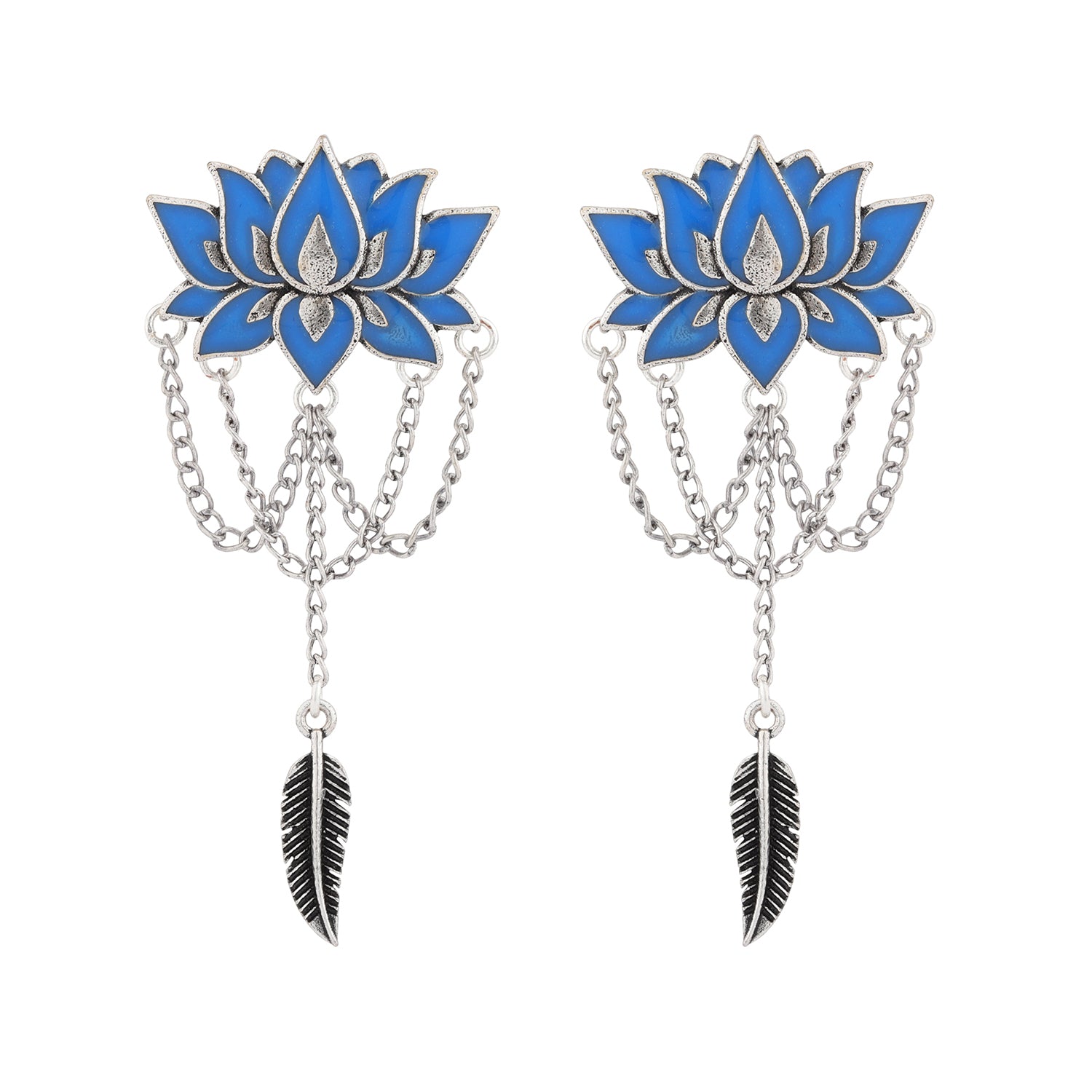 Embrace the free-spirited charm of the Boho Tribe Lotus Plume Oxidised Necklace Set, a stunning piece meticulously crafted from high-quality brass and adorned with a beautiful silver oxidised plating. This set embodies the bohemian essence with intricately designed lotus motifs, complemented by delicate chains and feather-like plumes. The vibrant blue hues add a pop of color, making it an ideal statement piece for any occasion, from everyday wear to special events like Holi, Diwali, and Valentine's Day. Whether paired with chic western outfits or traditional attire, this versatile necklace set ensures you make a striking impression. Perfect as a thoughtful gift for women—be it your girlfriend, wife, mother, or sister—this exquisite set is ideal for occasions such as Christmas, New Year, Rakshabandhan, and more.