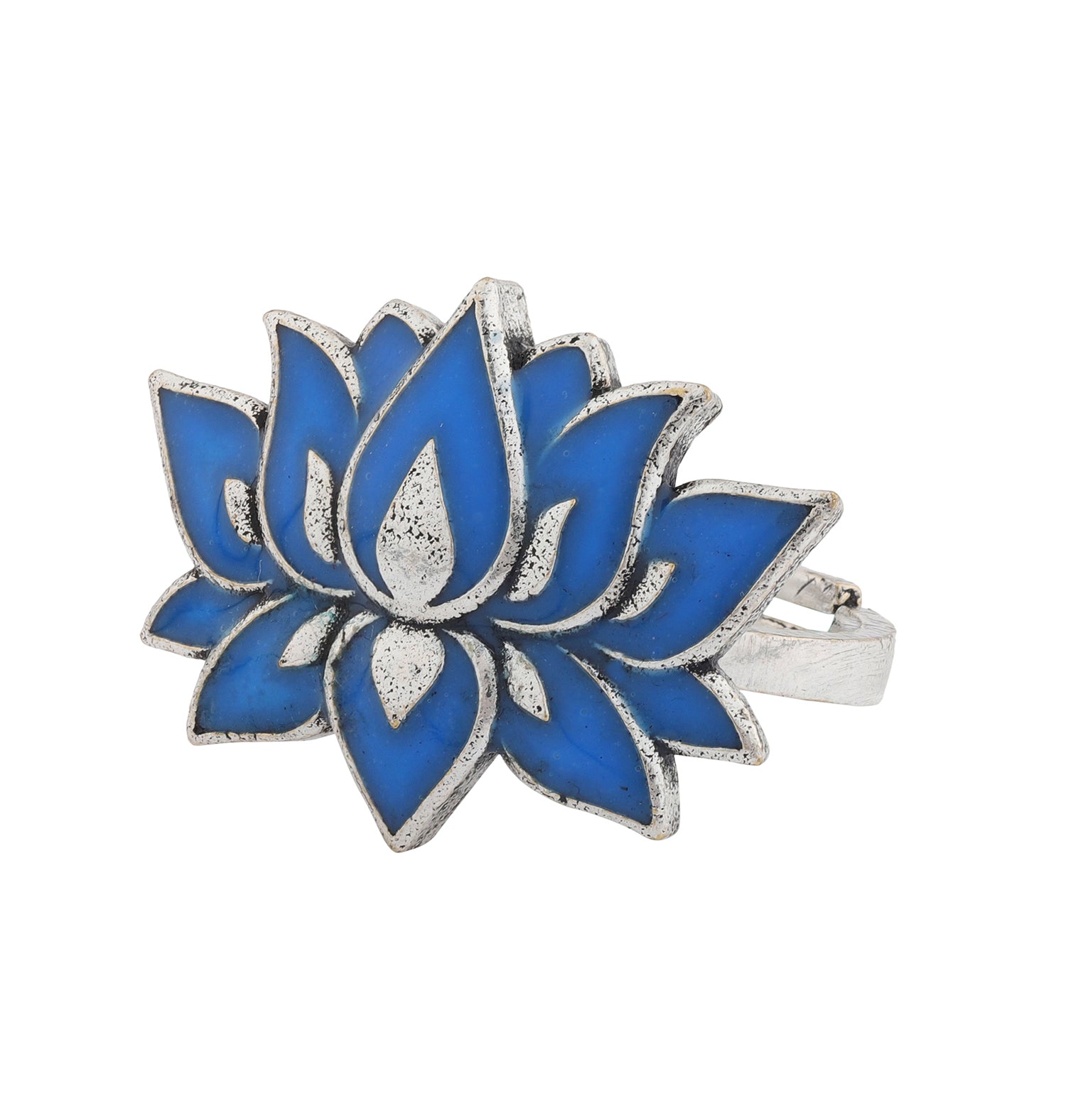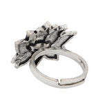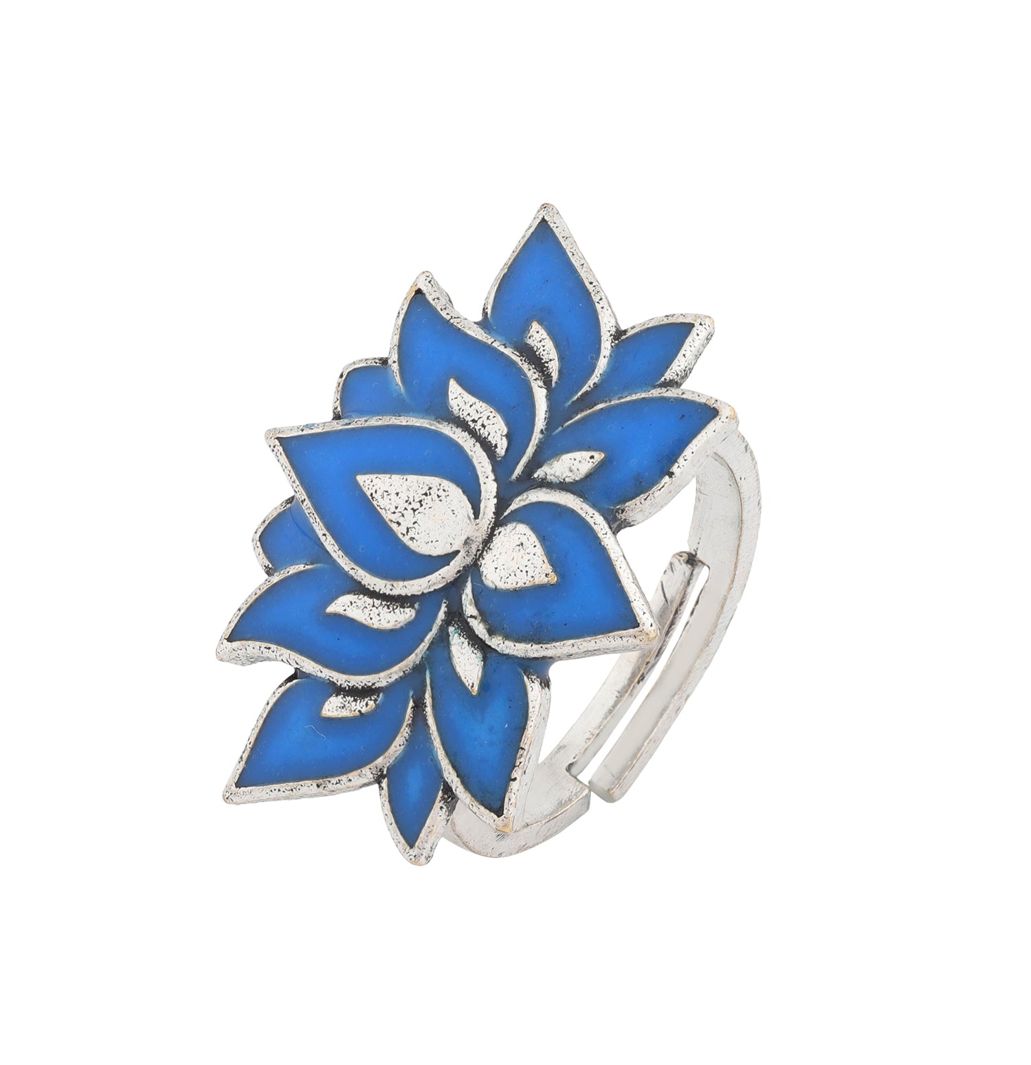 Boho Tribe Lotus Plume Oxidised Ring For Women