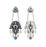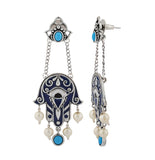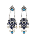 Boho Tribe Midnight Hamsa Oxidised Dangle Earrings